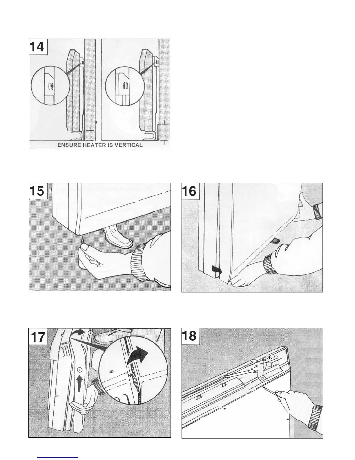 14. Secure heater to wall fi xing bracket by replacing the