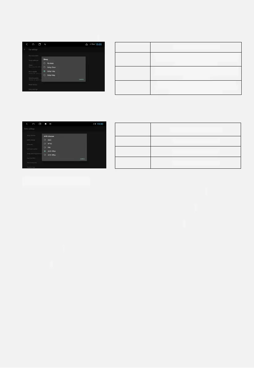 Car settings - sleep aging. Four options, as shown in Figure 3.2