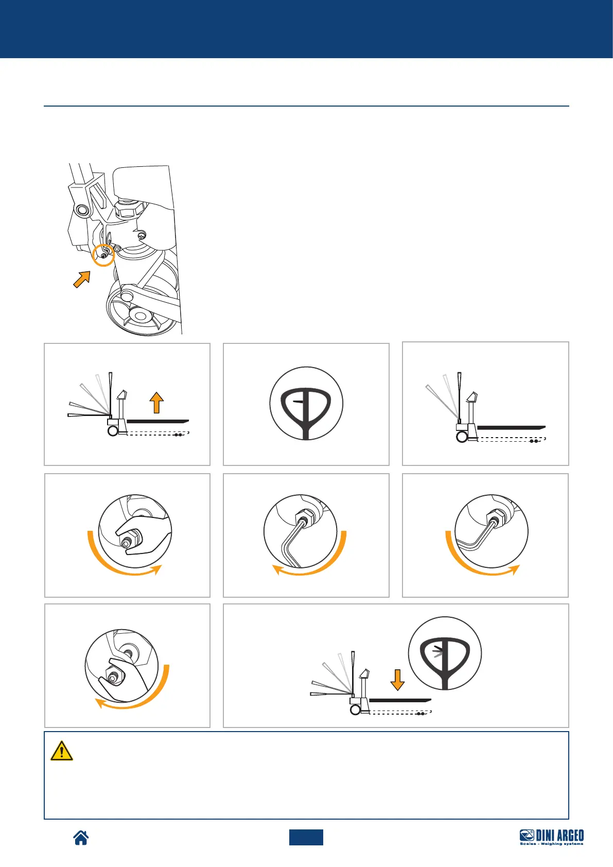 Make sure that with the tiller in its transport position, it is not possible to raise the forks.