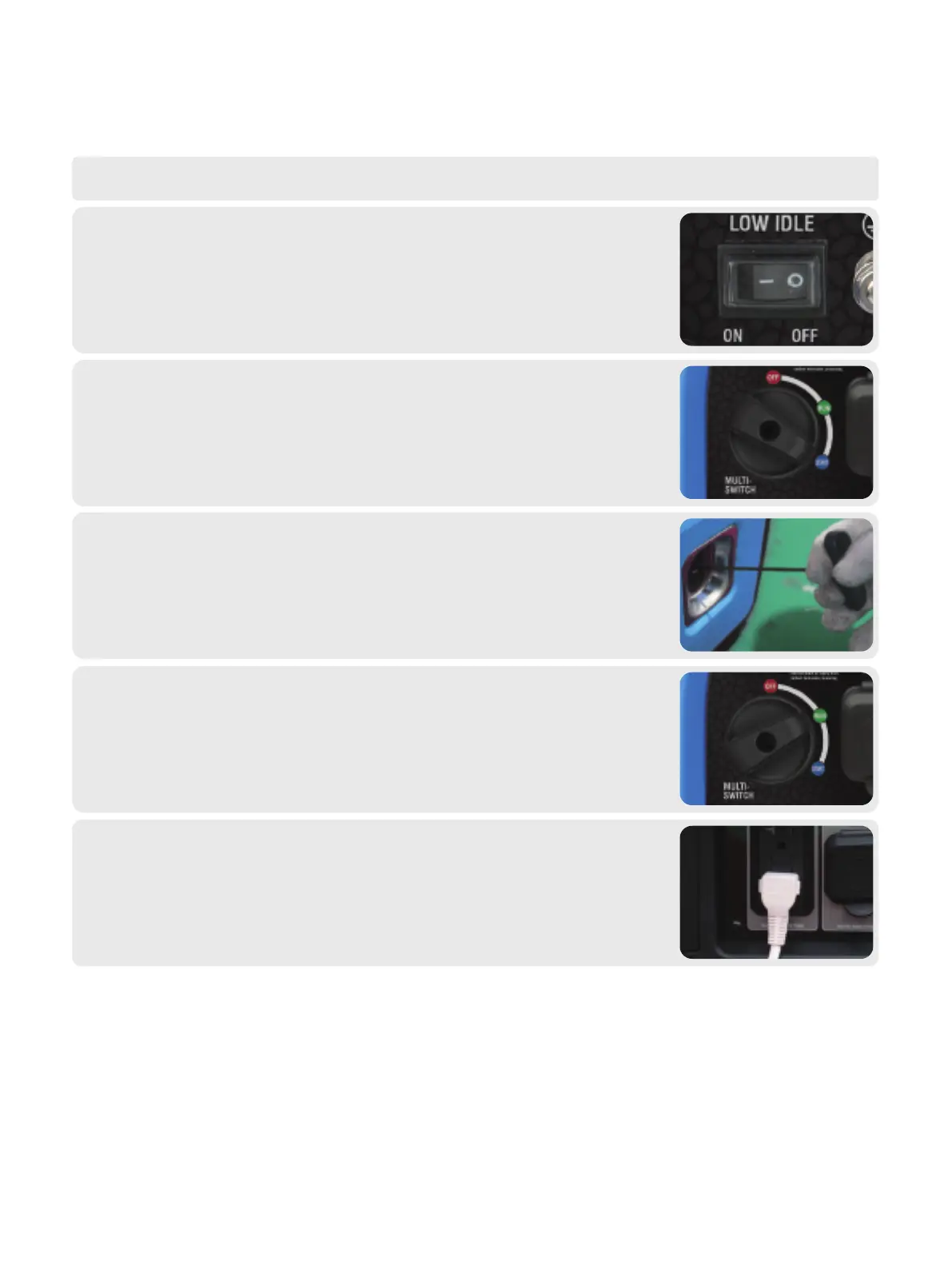 Tip: When pulling the hand starter, hold generator carrying handle firm, to