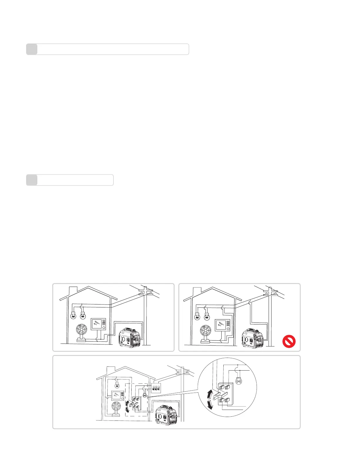 • When the generator is connected to household power source as a backup power supply, the connection shall be