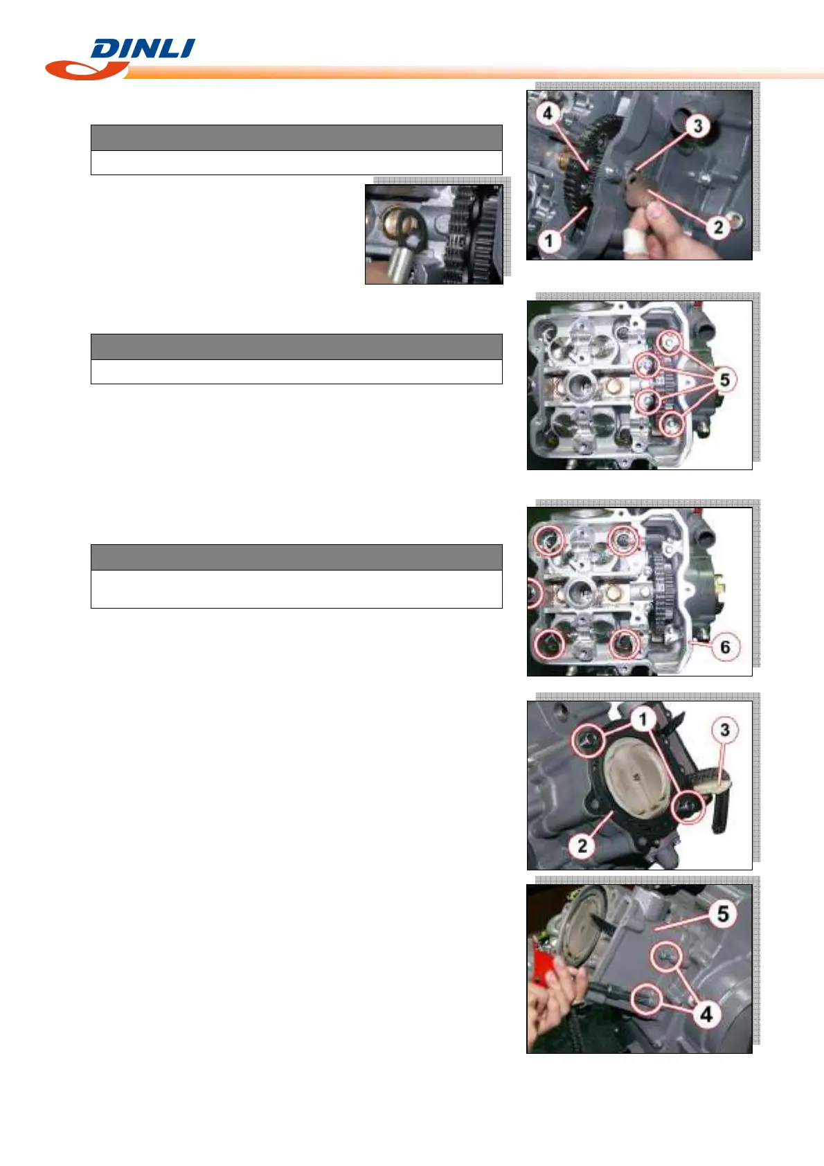 ● Remove the cylinder head bolts (M6) [5].