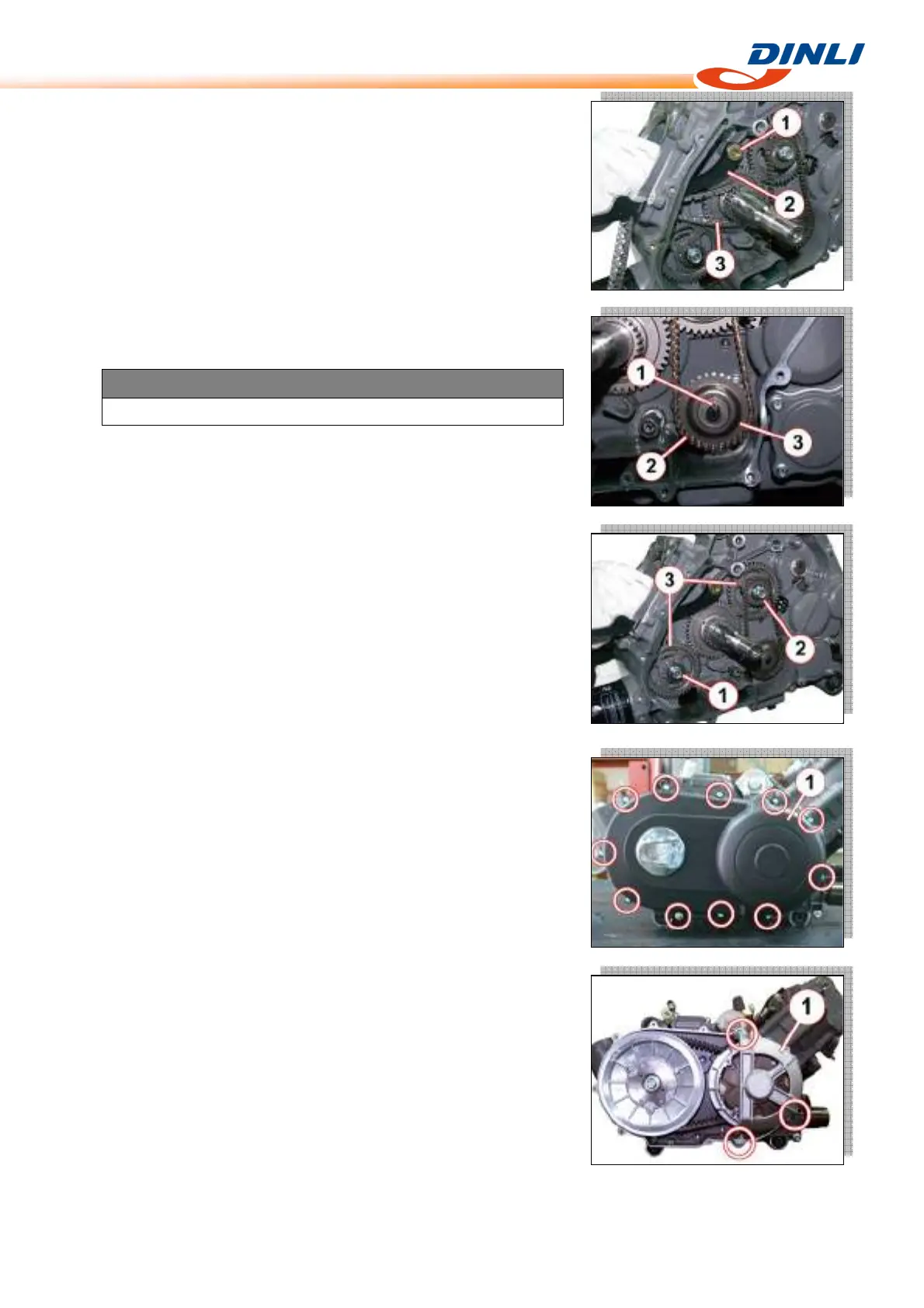 ● Remove the oil pump drive chain [2] and oil pump driven gear [3].