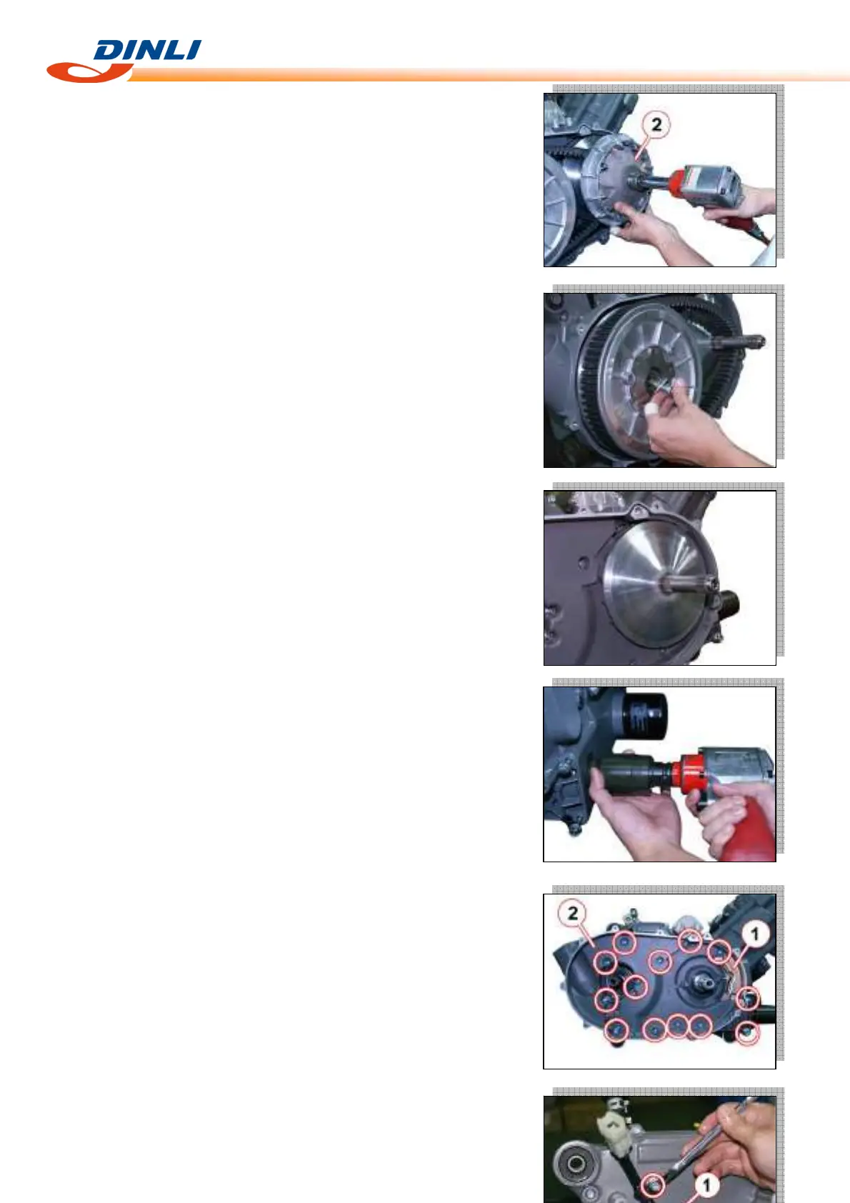 Remove the plate [1], clutch inner cover [2] with the clutch housing