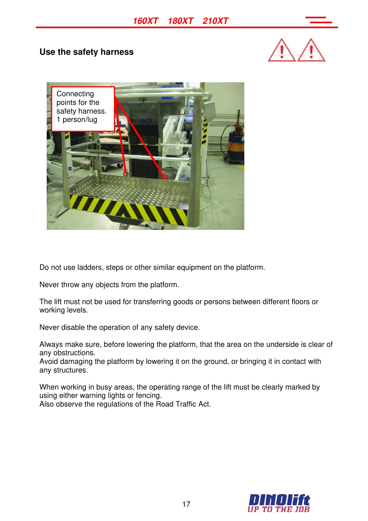 When working in busy areas, the operating range of the lift must be clearly marked by