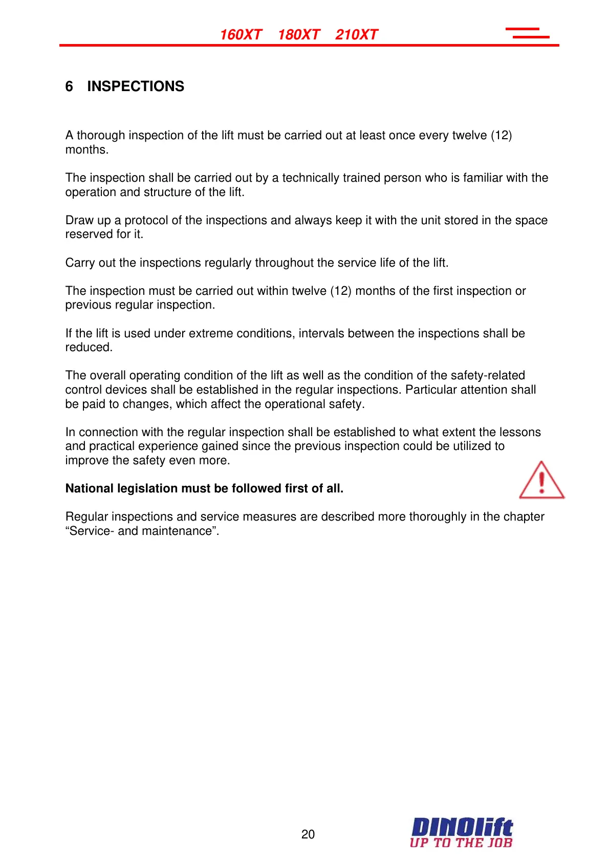 Regular inspections and service measures are described more thoroughly in the chapter