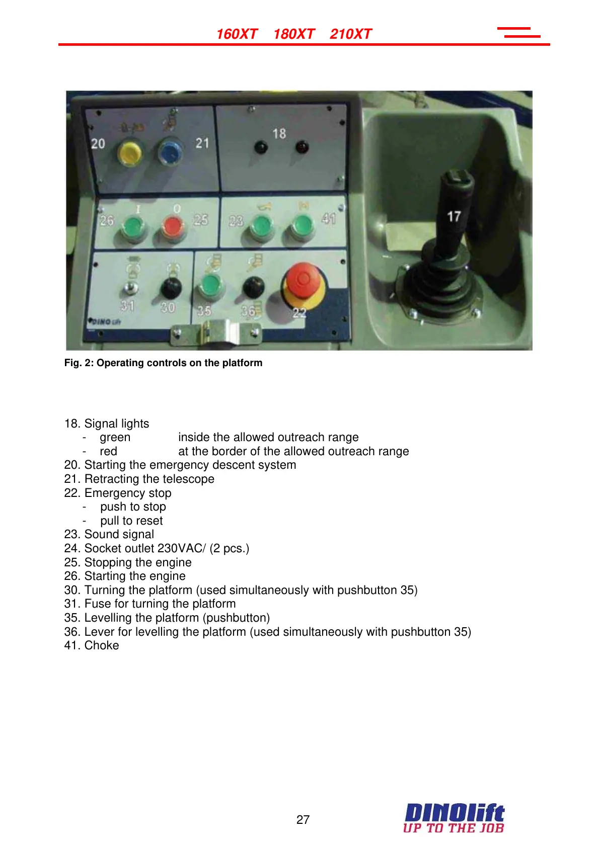 36. Lever for levelling the platform (used simultaneously with pushbutton 35)