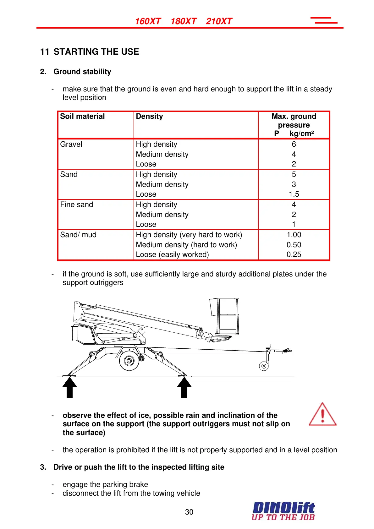 - make sure that the ground is even and hard enough to support the lift in a steady