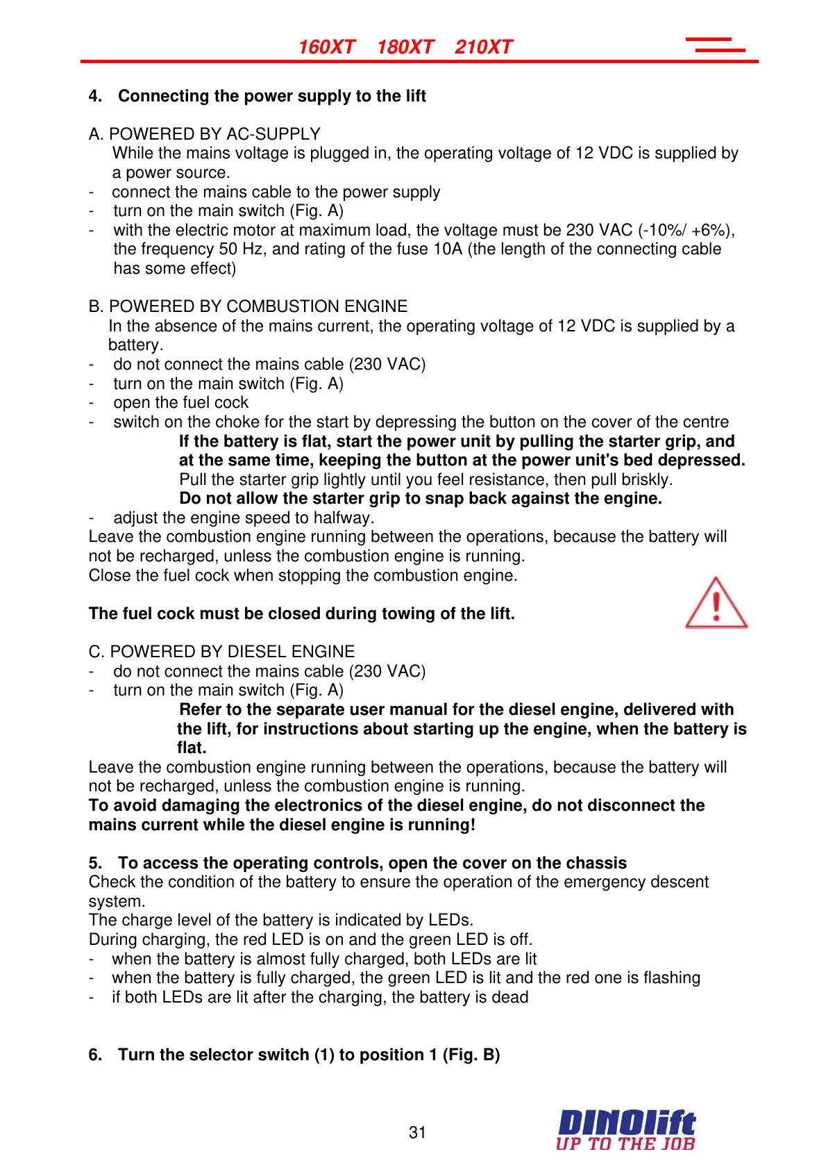 6. Turn the selector switch (1) to position 1 (Fig. B)