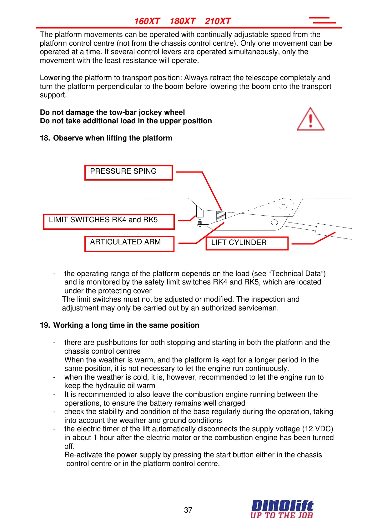 - the operating range of the platform depends on the load (see “Technical Data”)