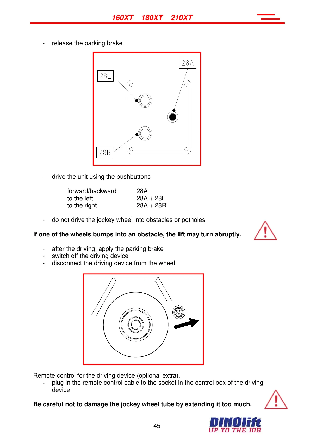 - do not drive the jockey wheel into obstacles or potholes