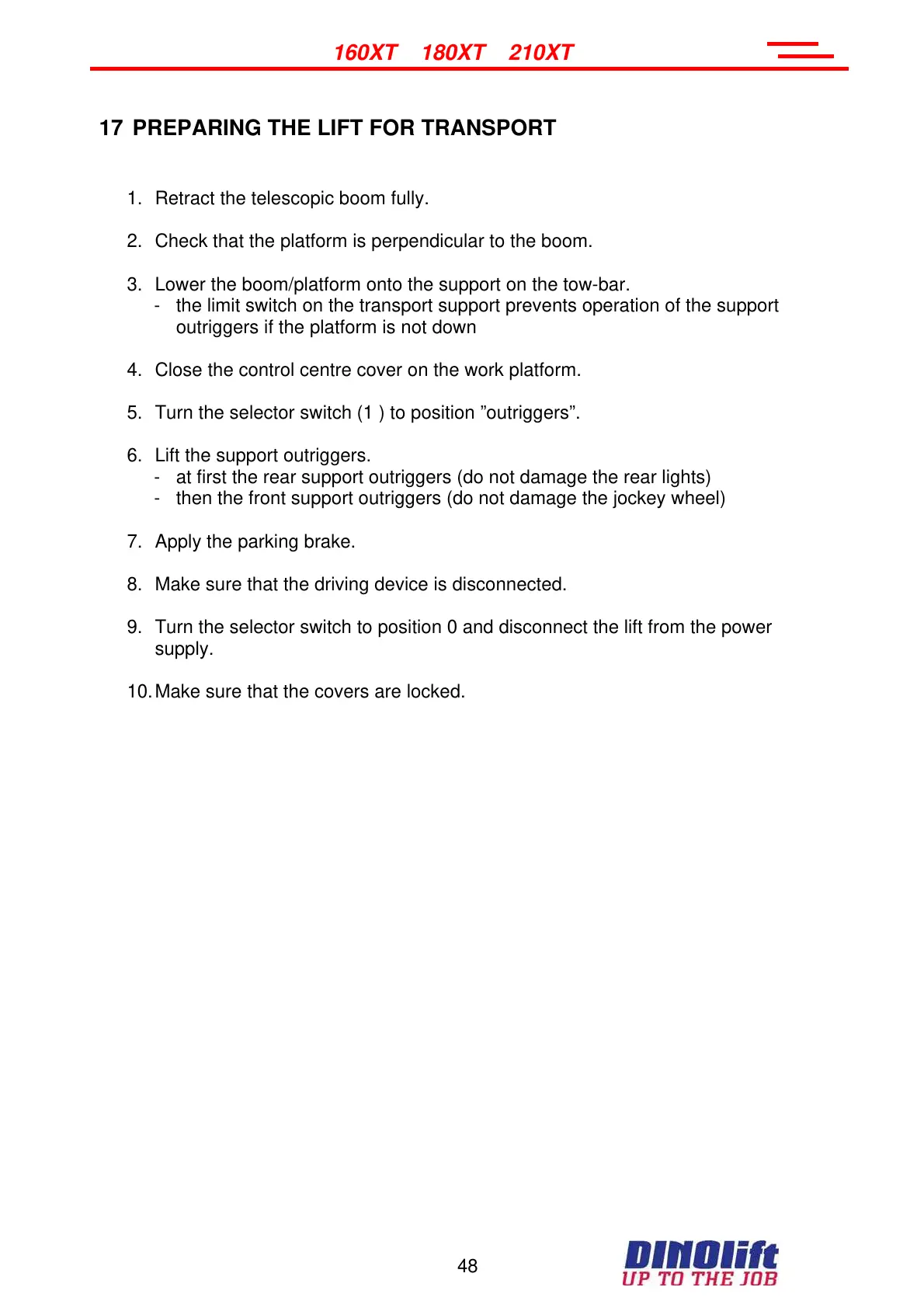 9. Turn the selector switch to position 0 and disconnect the lift from the power