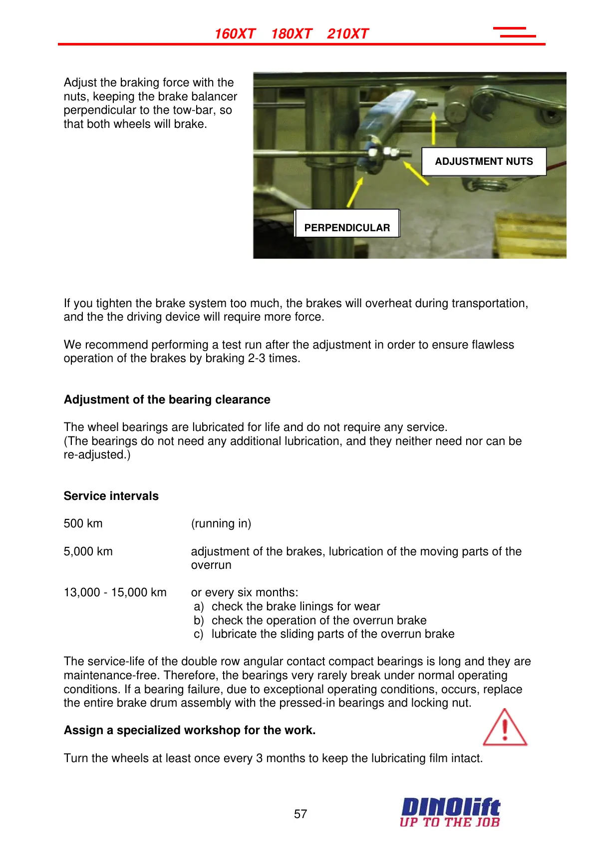 If you tighten the brake system too much, the brakes will overheat during transportation,
