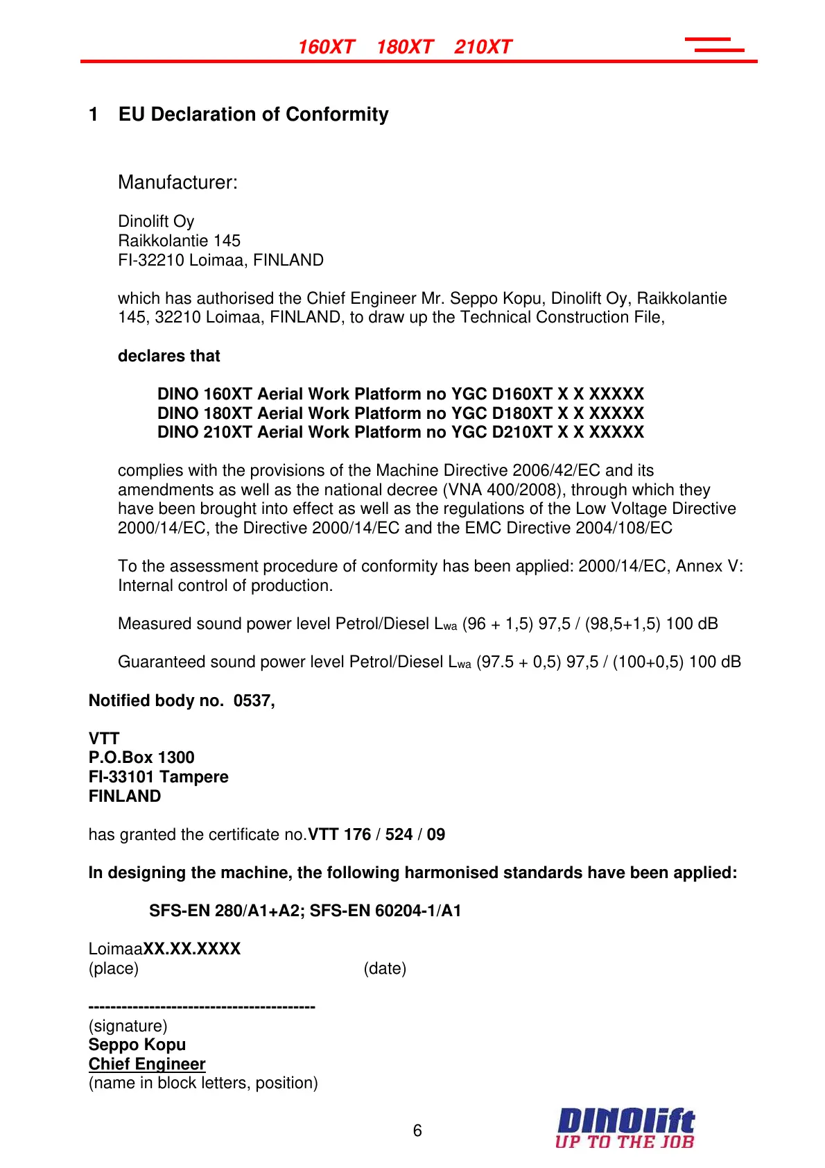 which has authorised the Chief Engineer Mr. Seppo Kopu, Dinolift Oy, Raikkolantie