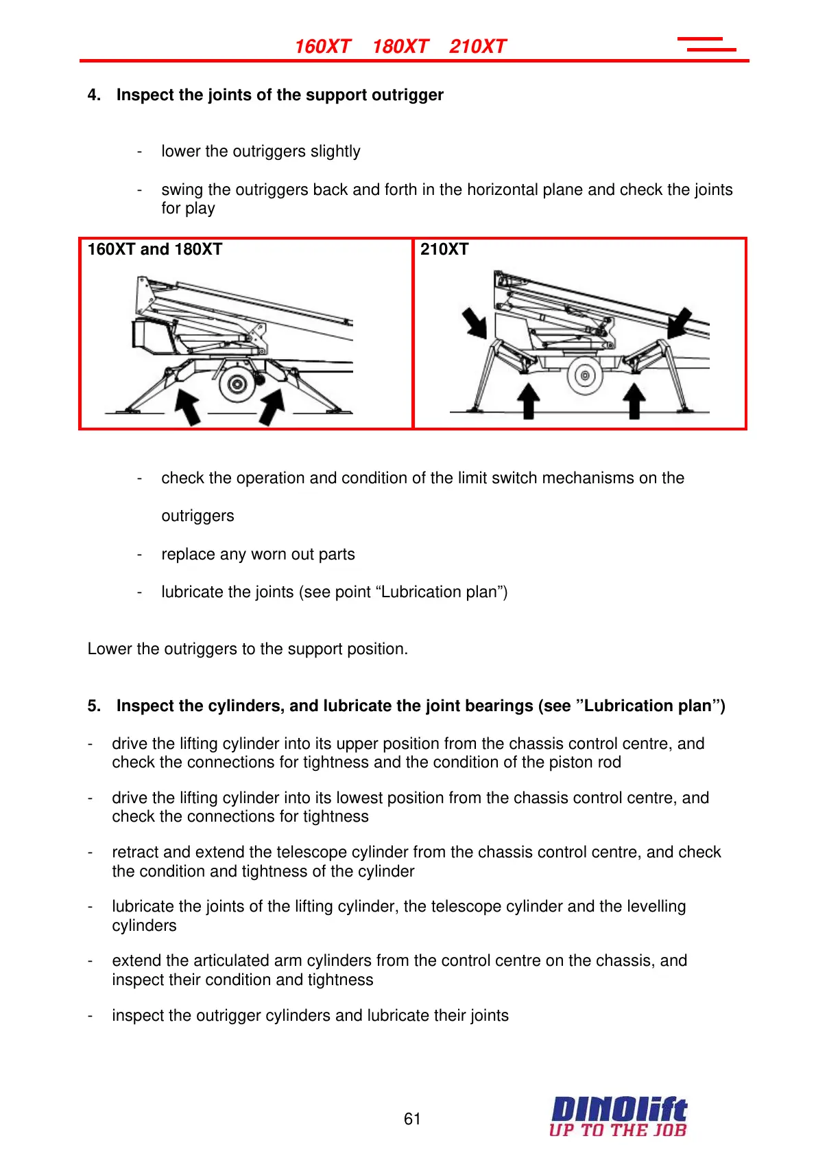 - lubricate the joints of the lifting cylinder, the telescope cylinder and the levelling