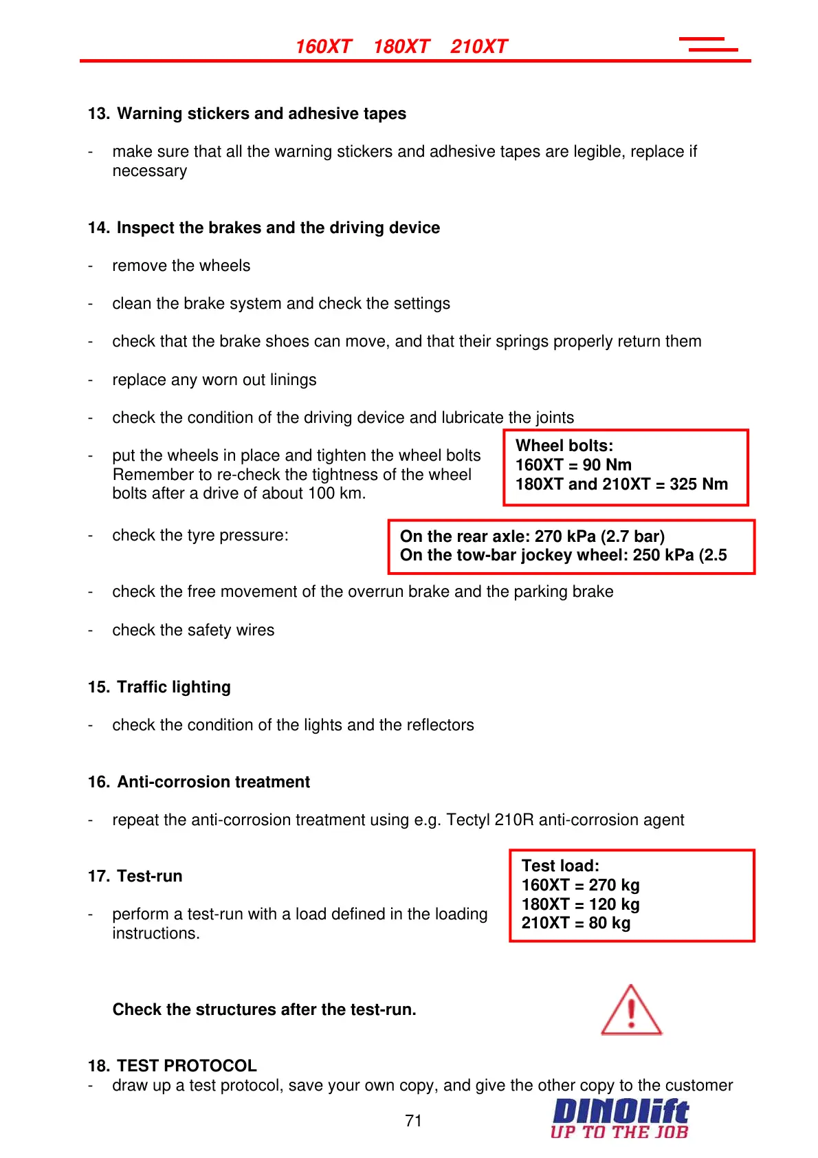 - make sure that all the warning stickers and adhesive tapes are legible, replace if