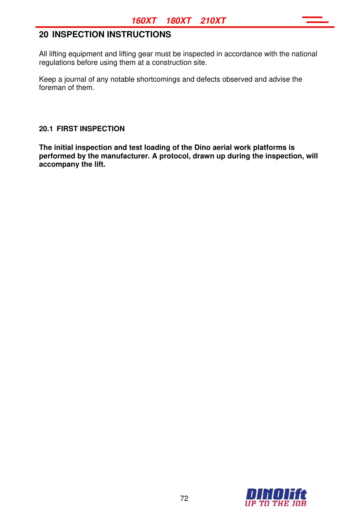 performed by the manufacturer. A protocol, drawn up during the inspection, will