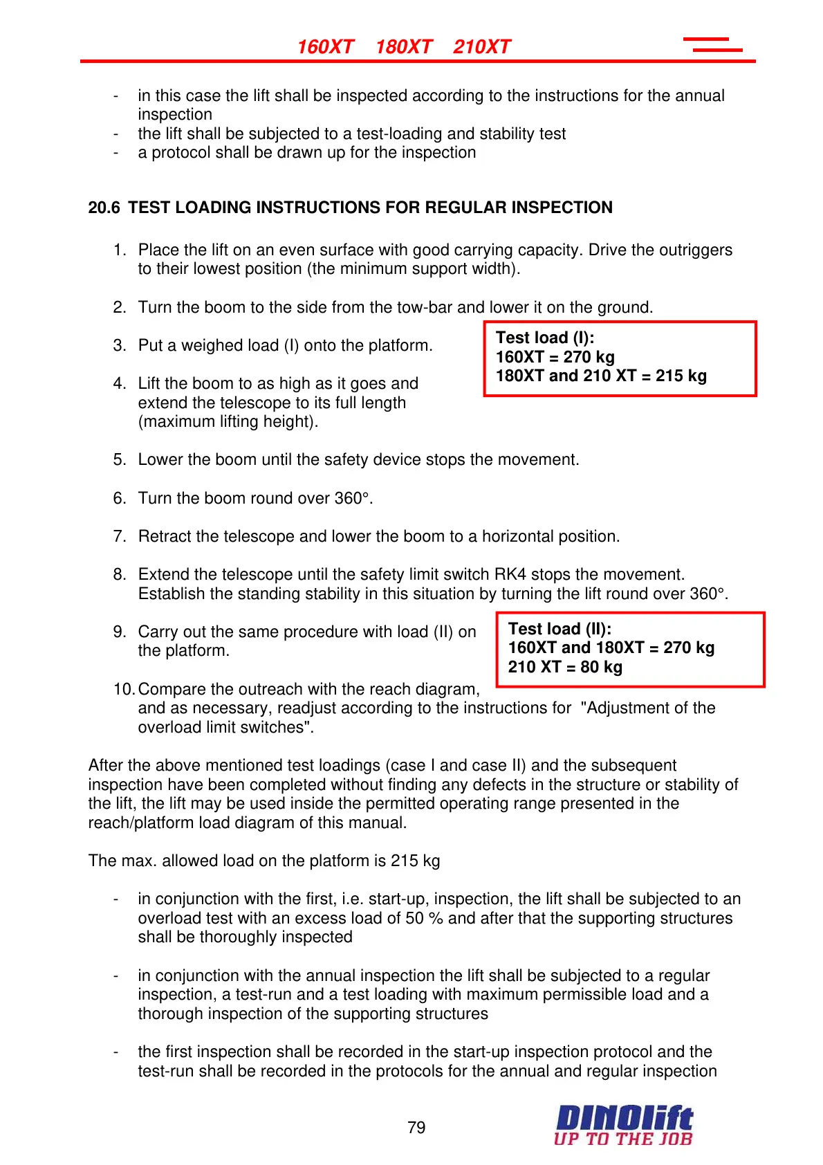 20.6 TEST LOADING INSTRUCTIONS FOR REGULAR INSPECTION