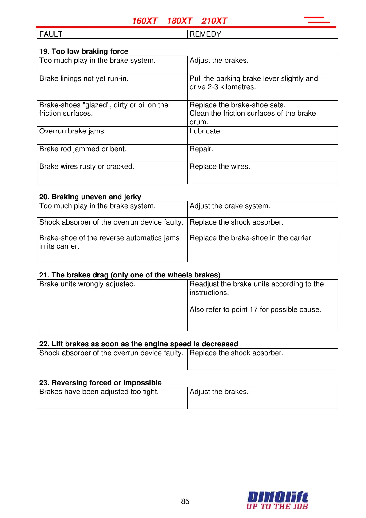 20. Braking uneven and jerky