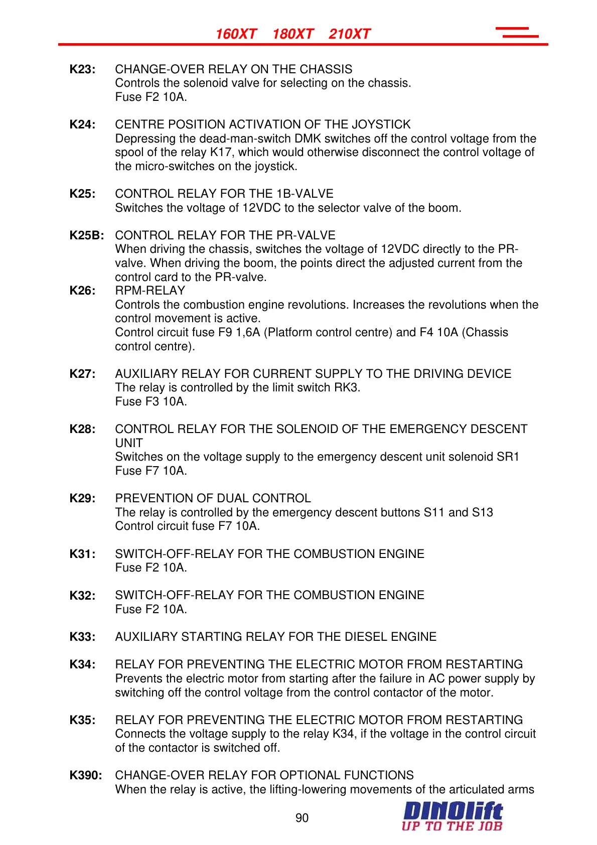 When the relay is active, the lifting-lowering movements of the articulated arms