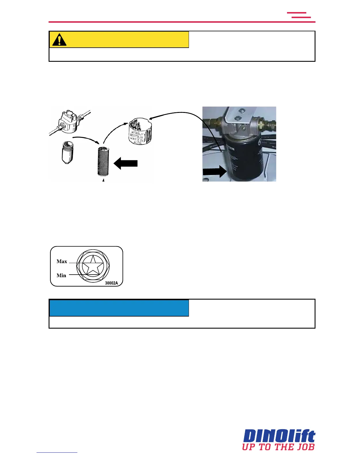 3. if required, top up hydraulic oil to the upper level marking of the level eye while the lift is