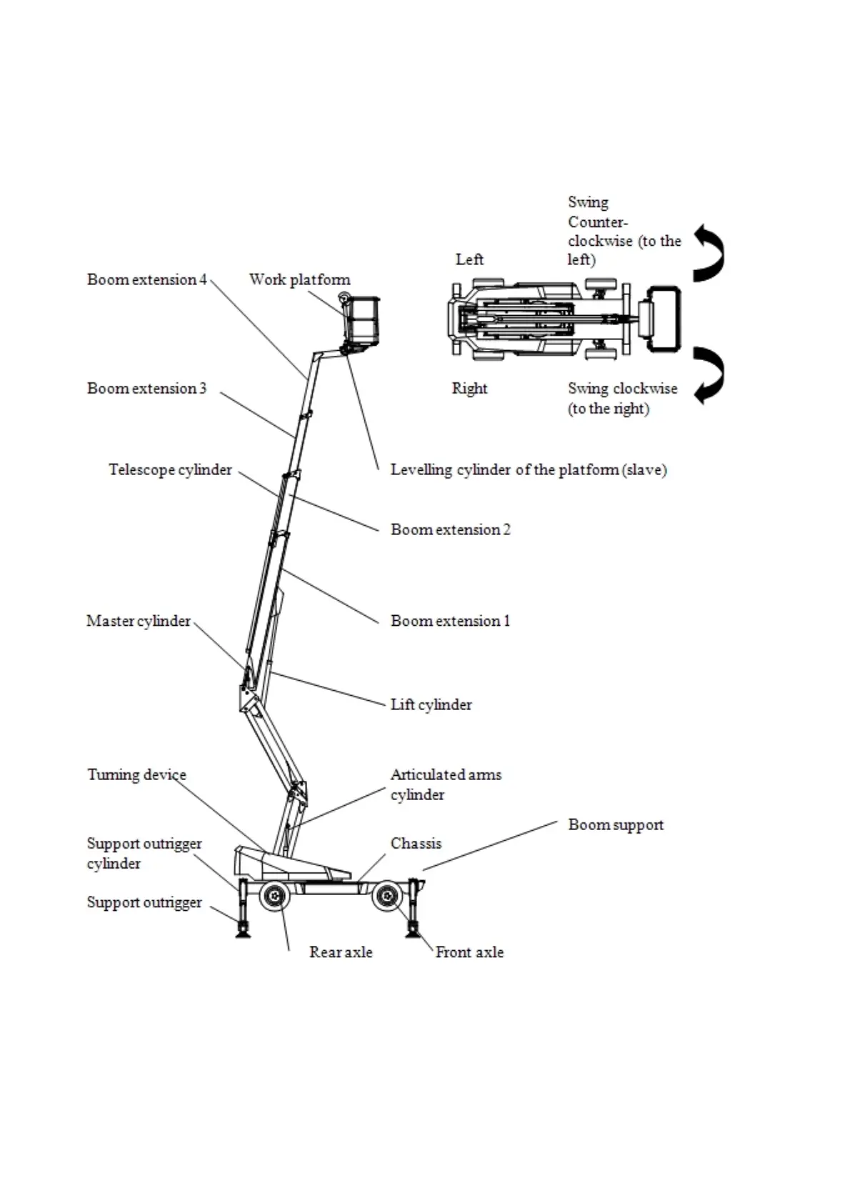 platform to the limit of its load-bearing capacity and reach (refer to the table of Technical