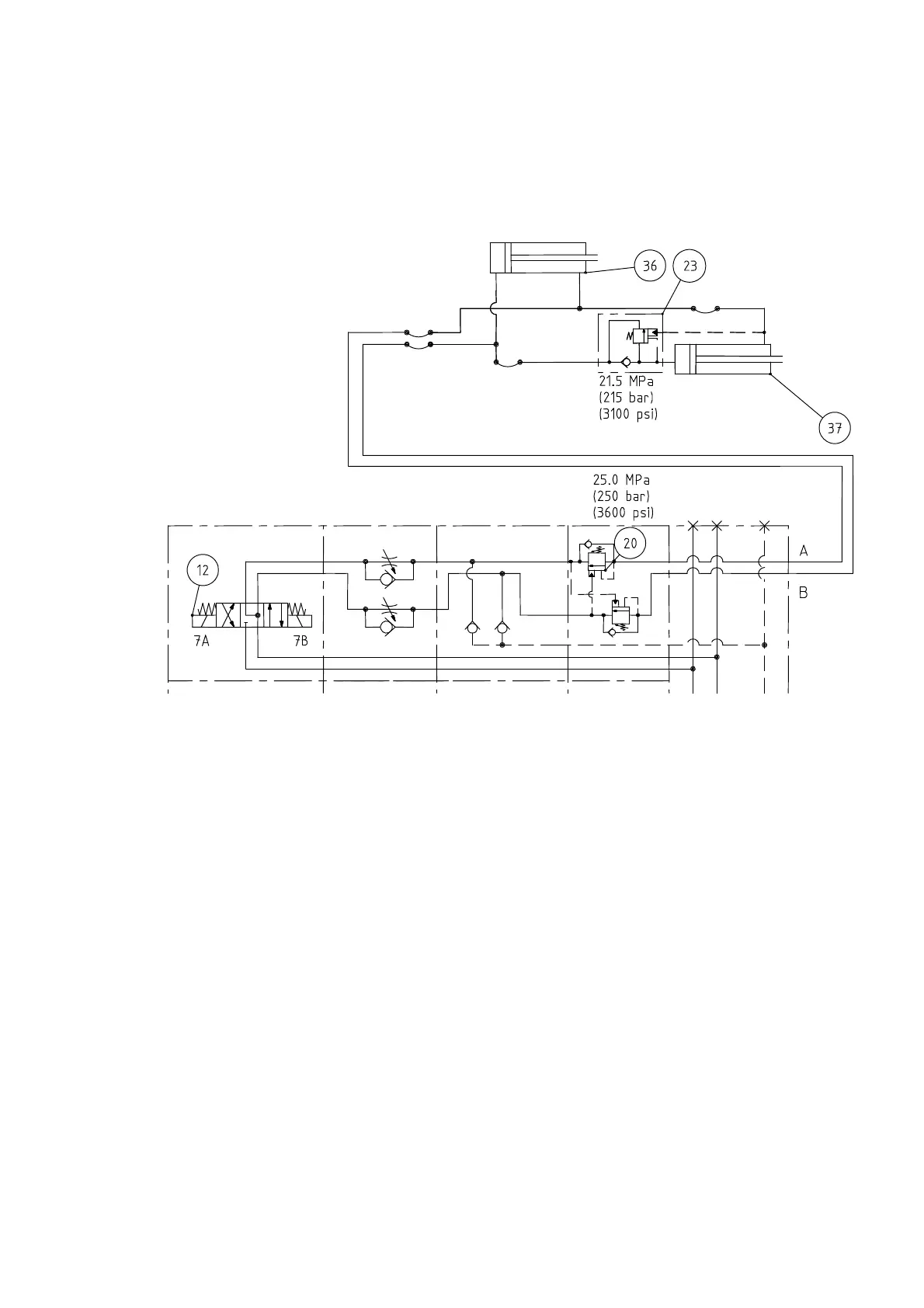 - the opening pressure of the load regulation valve (23) under the platform is 21.5 MPa (215 bar)