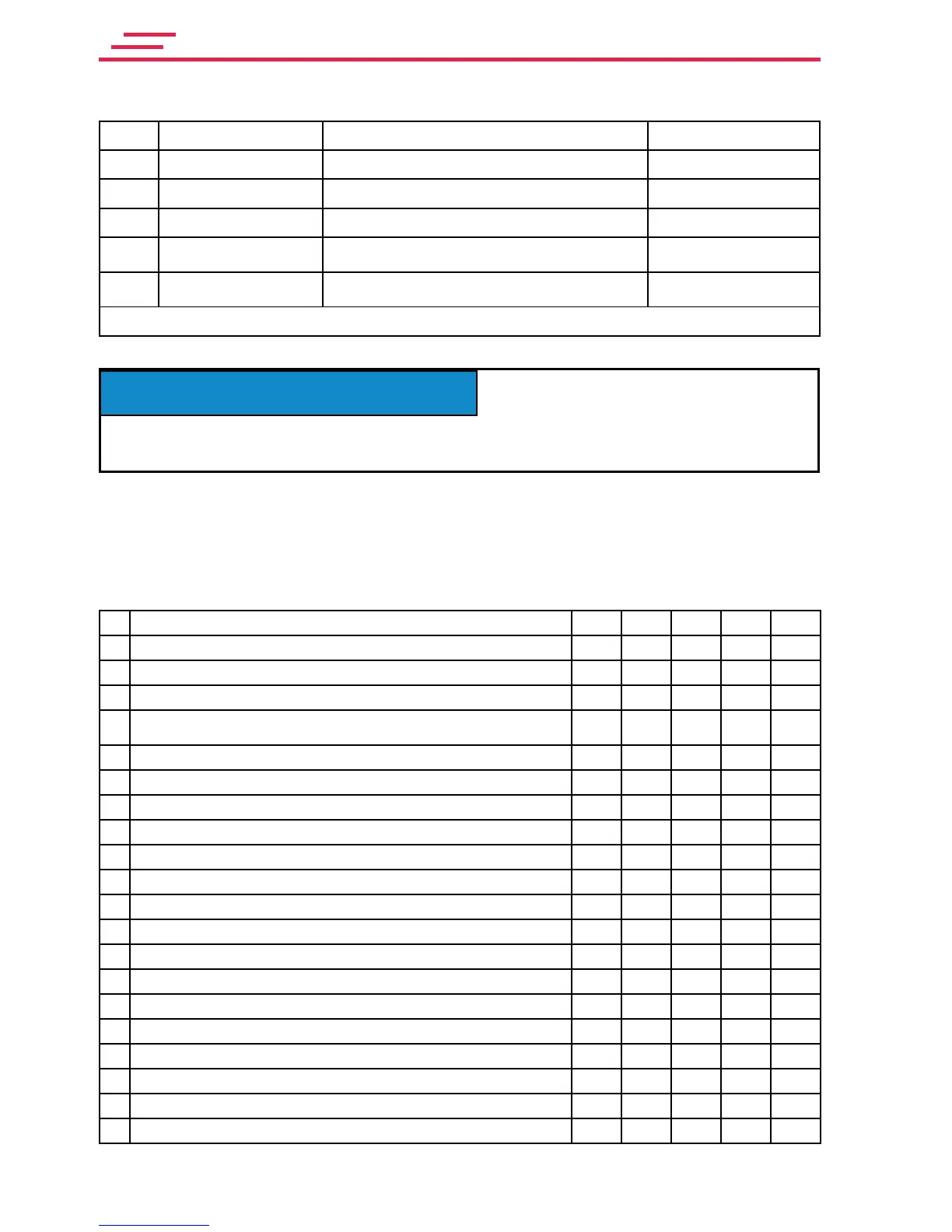6 months / 500 hours* Competent person who is familiar with the lift Maintenance instructions