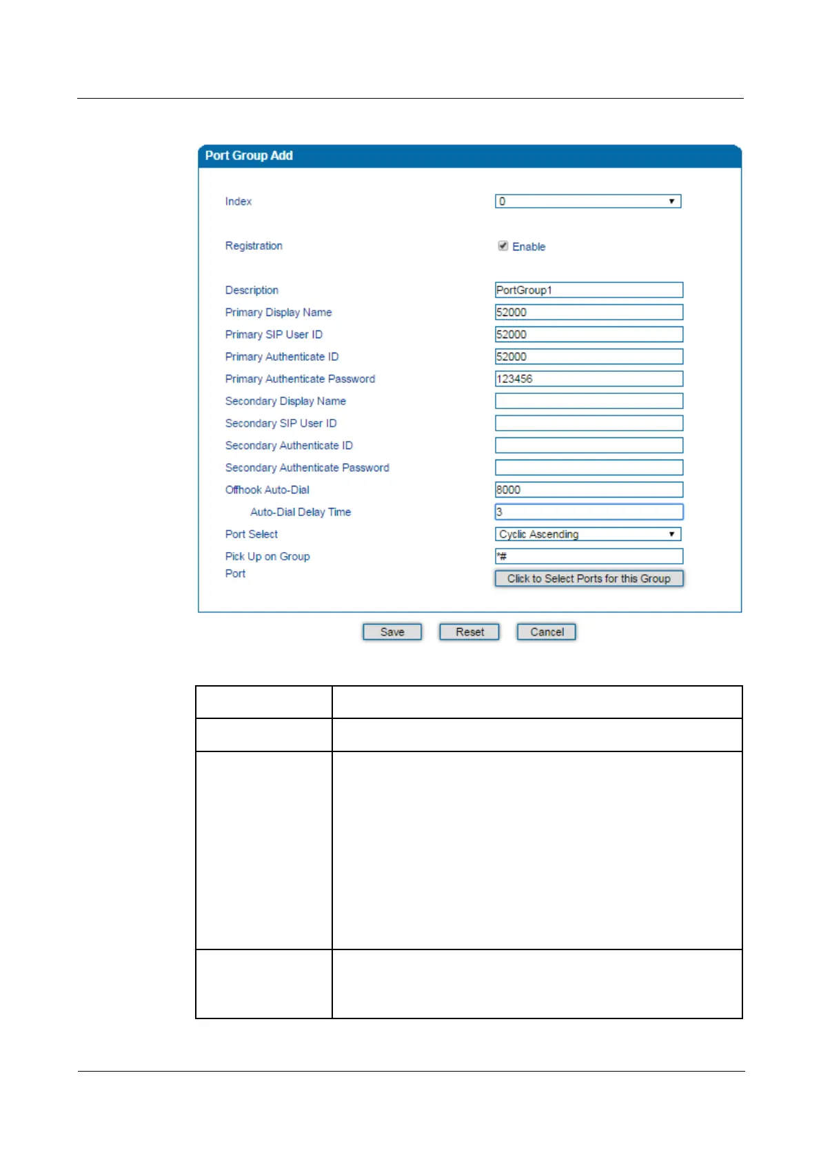 Table 4-11 Parameter Explanation of Port Group
