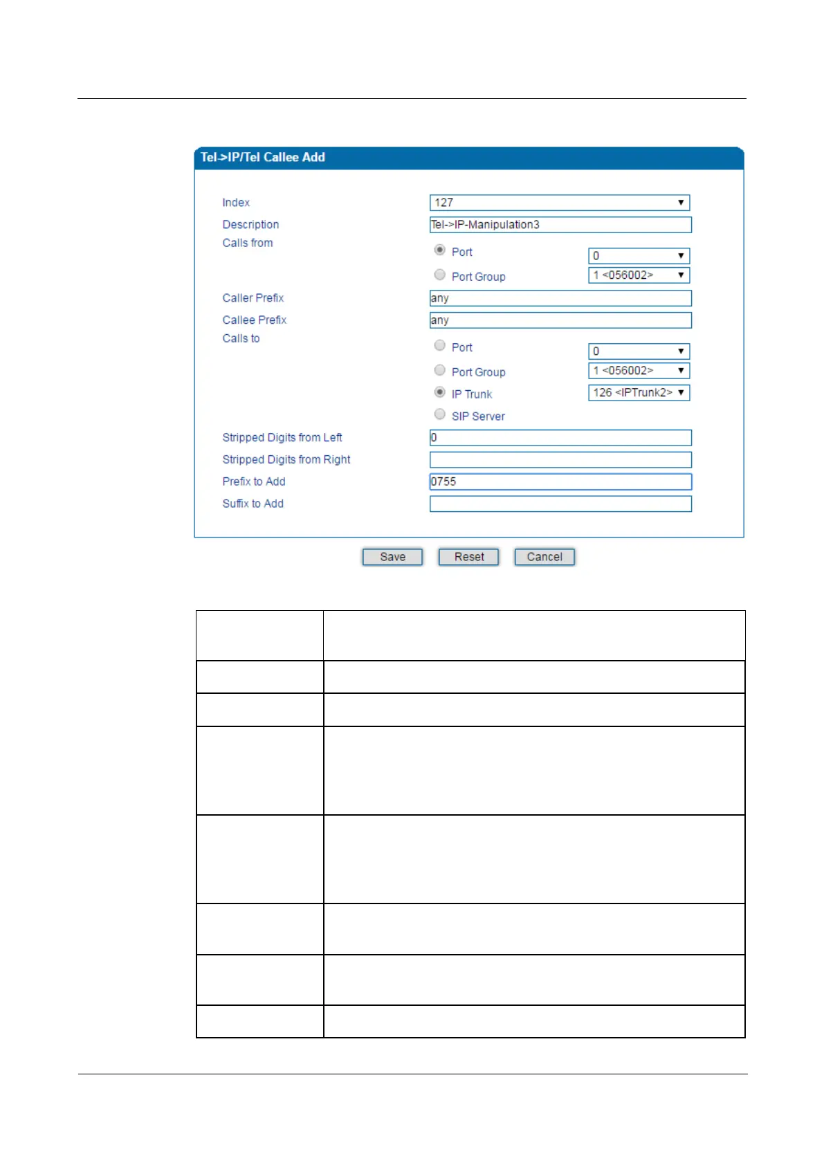 Table 4-19 Explanation of Parameters for Tel IP/Tel Callee Number Manipulation