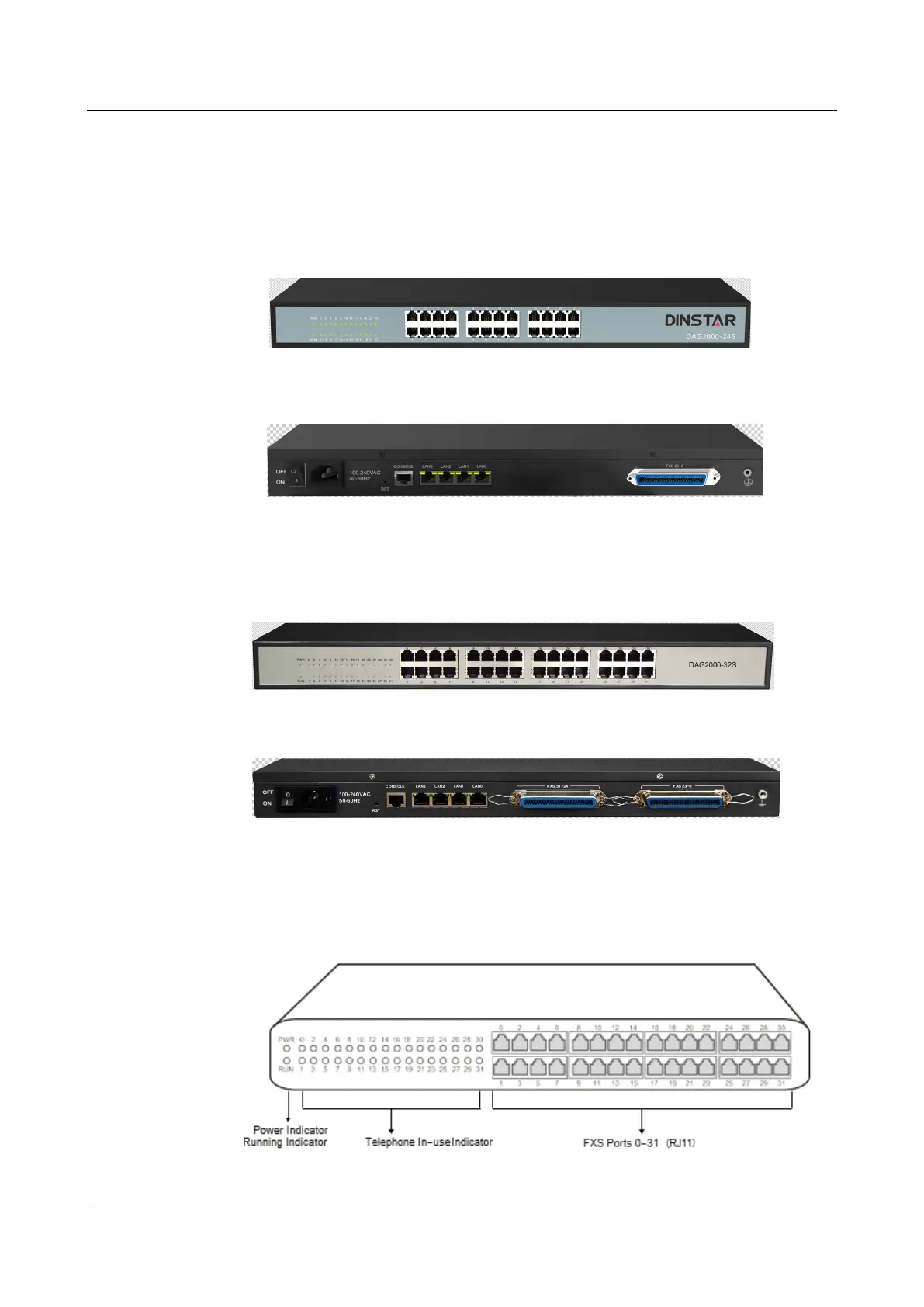 Dinstar DAG2000-24S - 1 Product Introduction; 1.3 Product Appearance; 1.3.1 Appearance of DAG2000-24 S; 1.3.2 Appearance of DAG2000-32 S