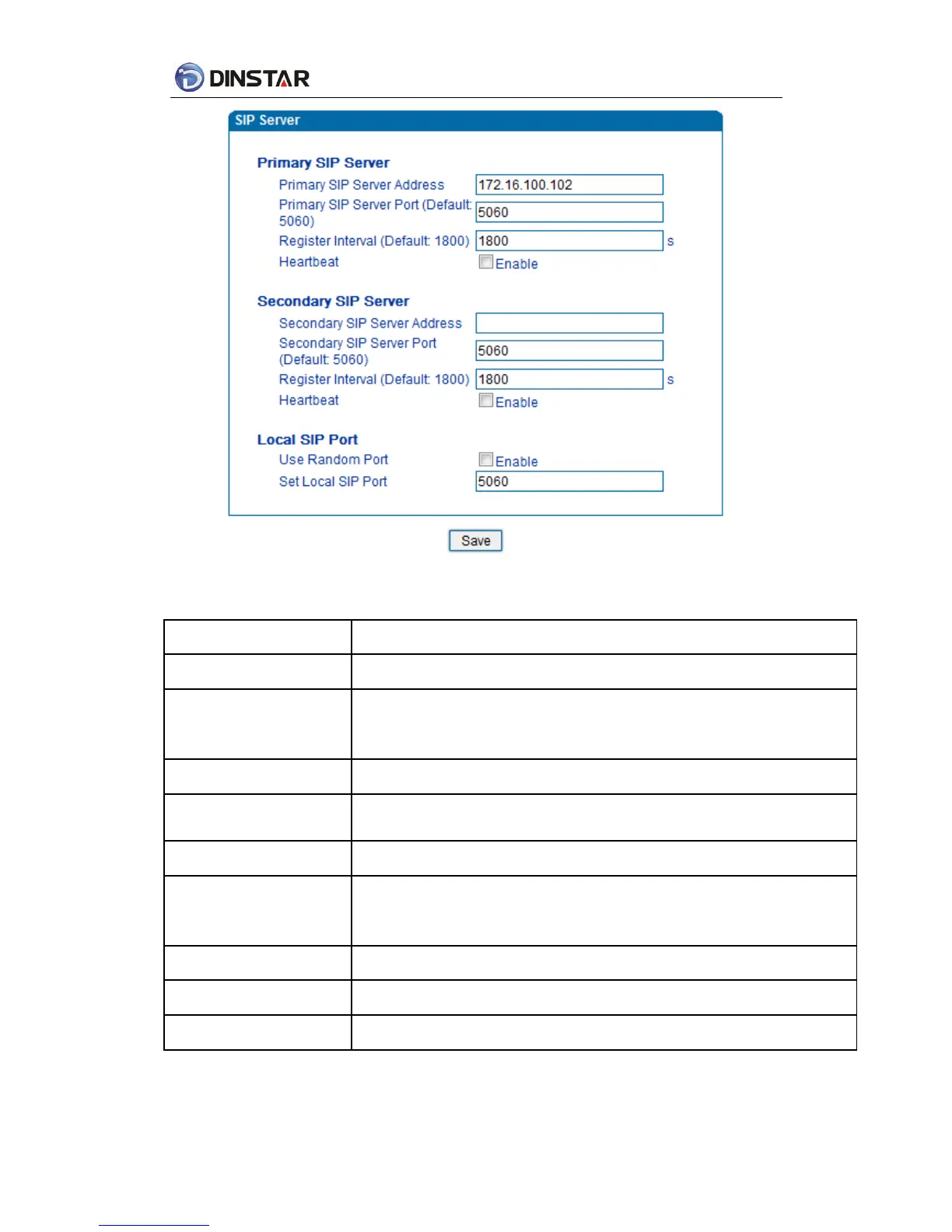 Figure 4.6-1 SIP Server Configuration Interface