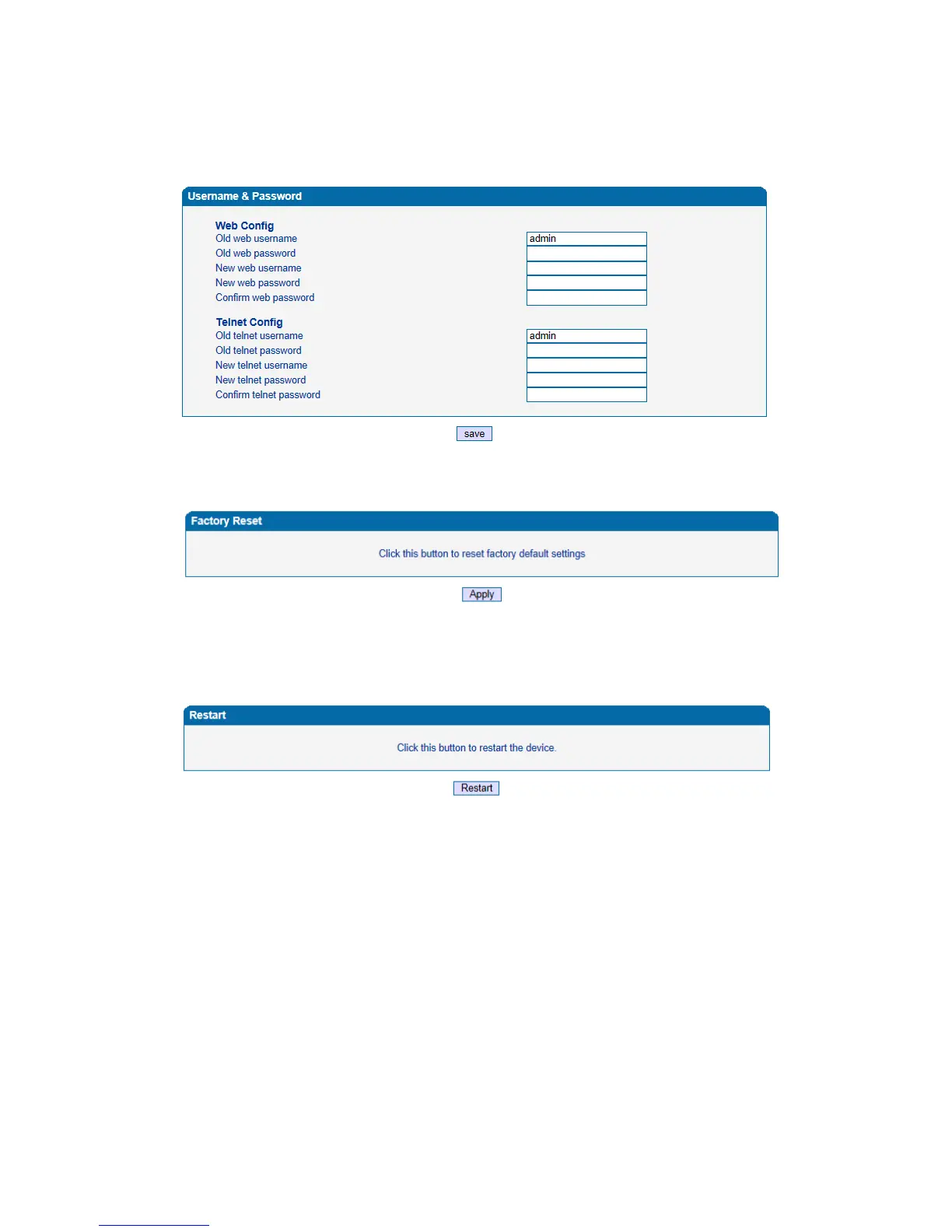Click the “Save” button in the Configuration page to save the changes to the equipment