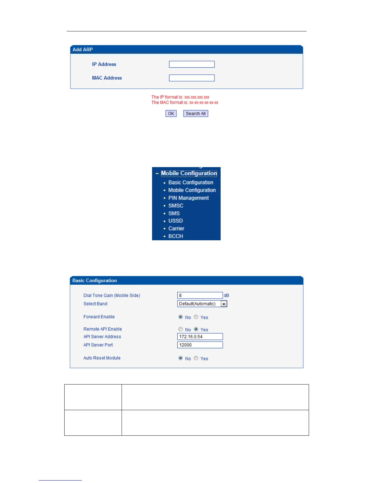 Table 4-6-1 Description of Basic Configuration