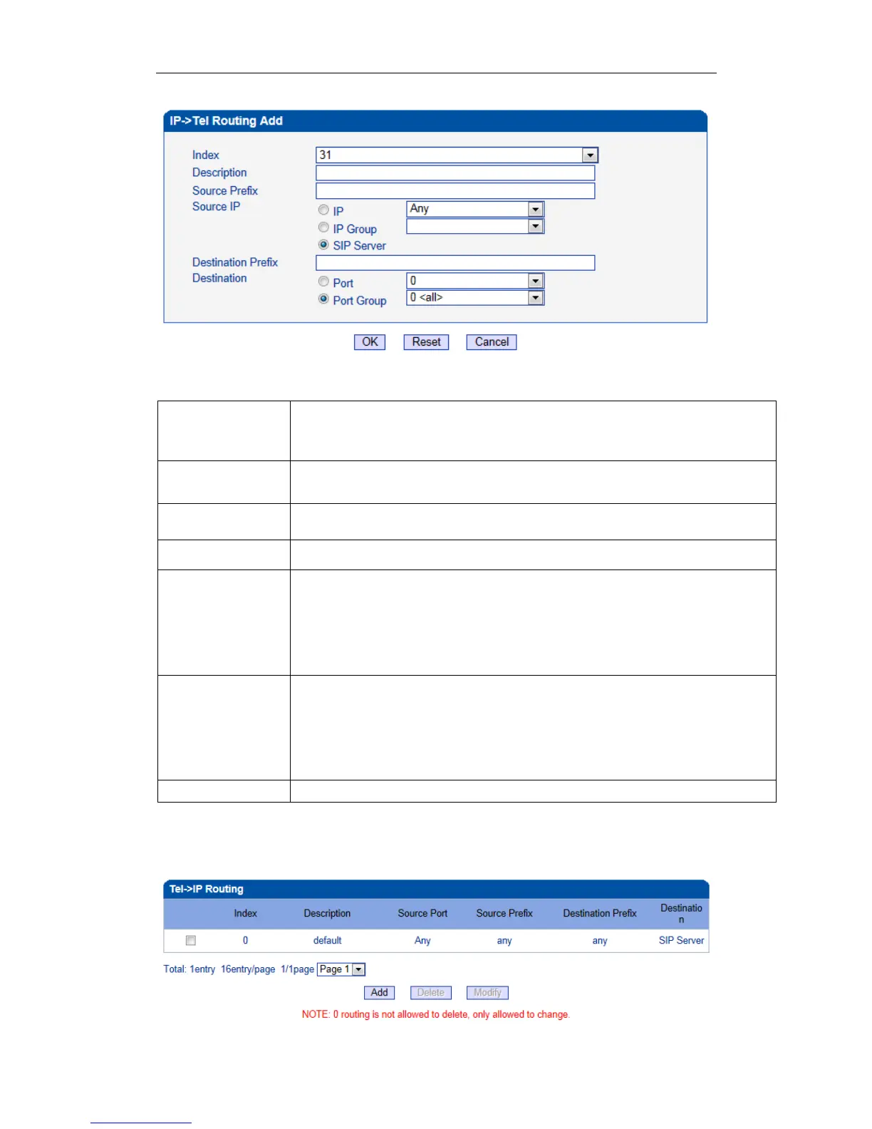 This item uses to configure outgoing call routes which can be used for recieve the calls