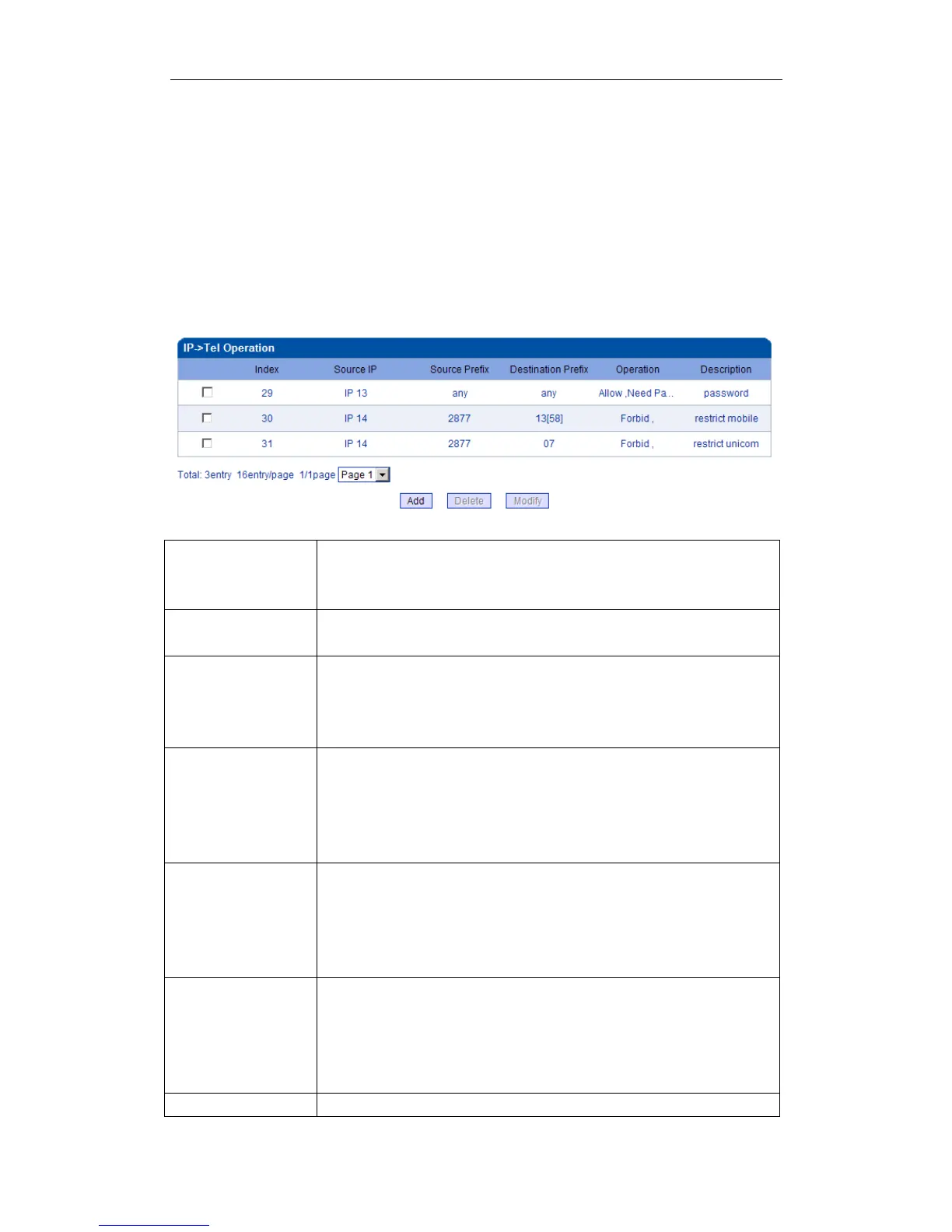 Table 4-9-1 Description of IP->Tel Operation
