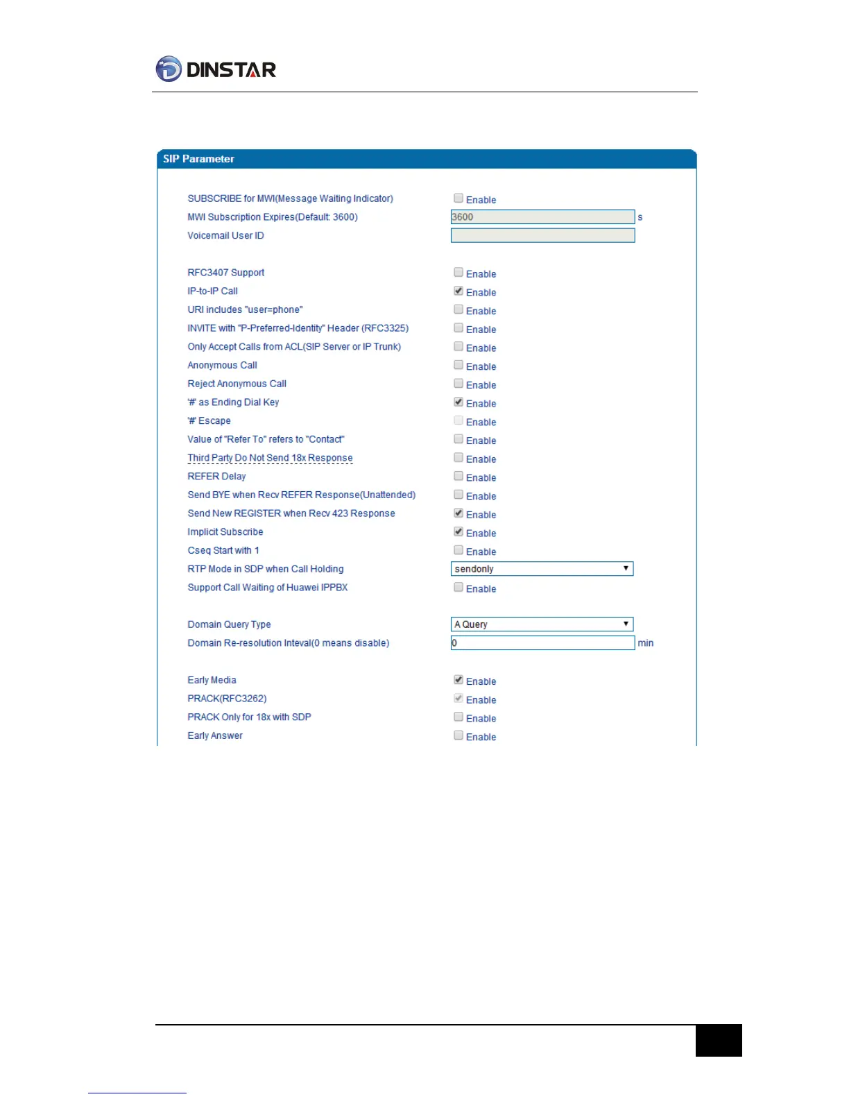 Dinstar FXS - SIP Parameter