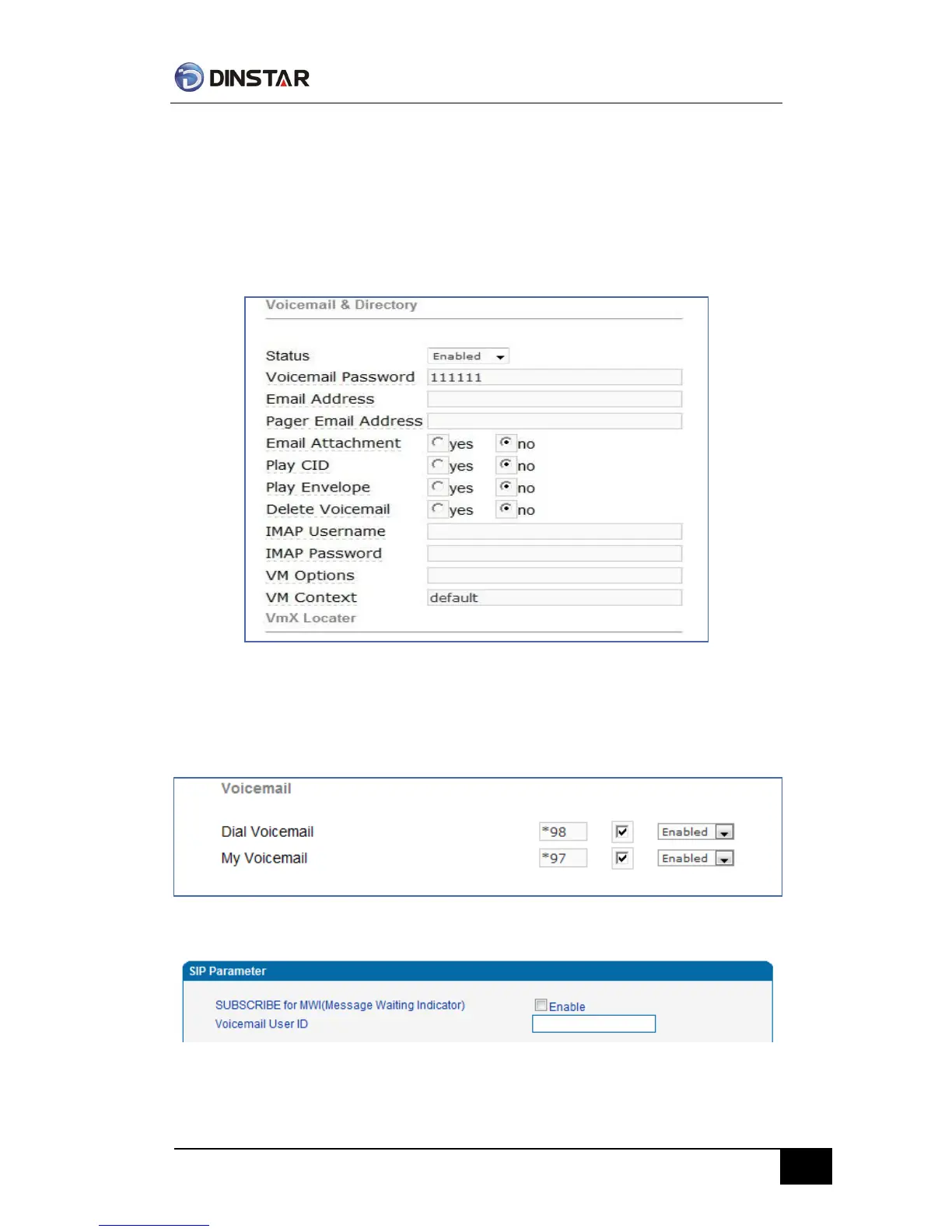 VoiceMail Setting In SIP Parameter