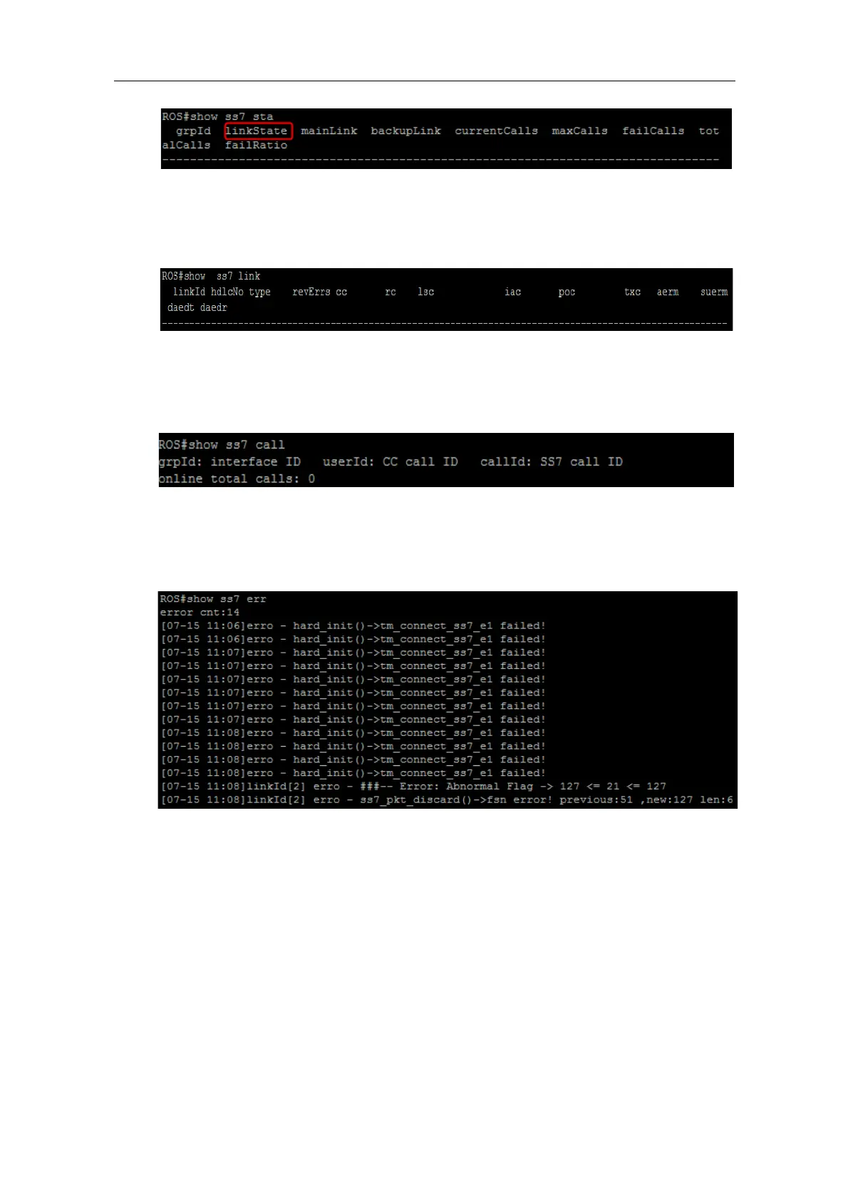 Enter the command show ss7 link, and statistics about SS7 link are displayed.