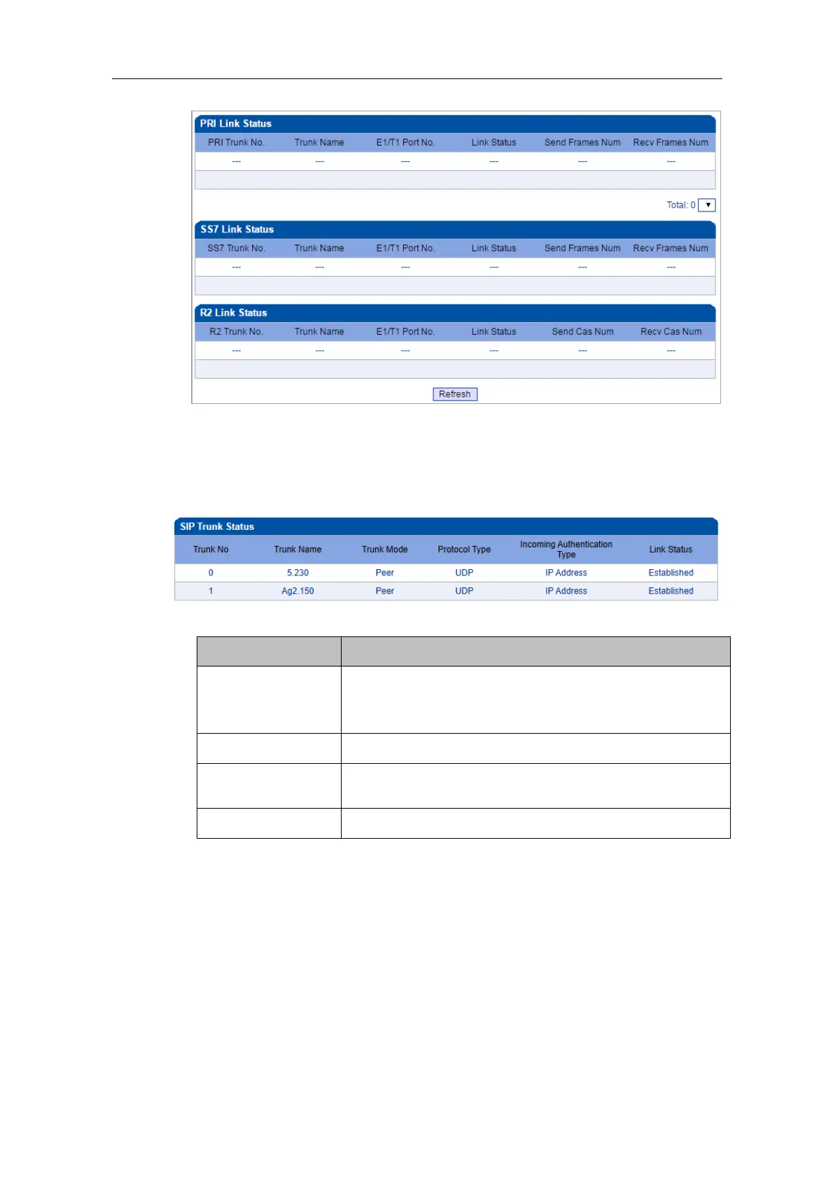 On the IP Trunk Status interface, the statuses of SIP trunks are displayed. The SIP trunks