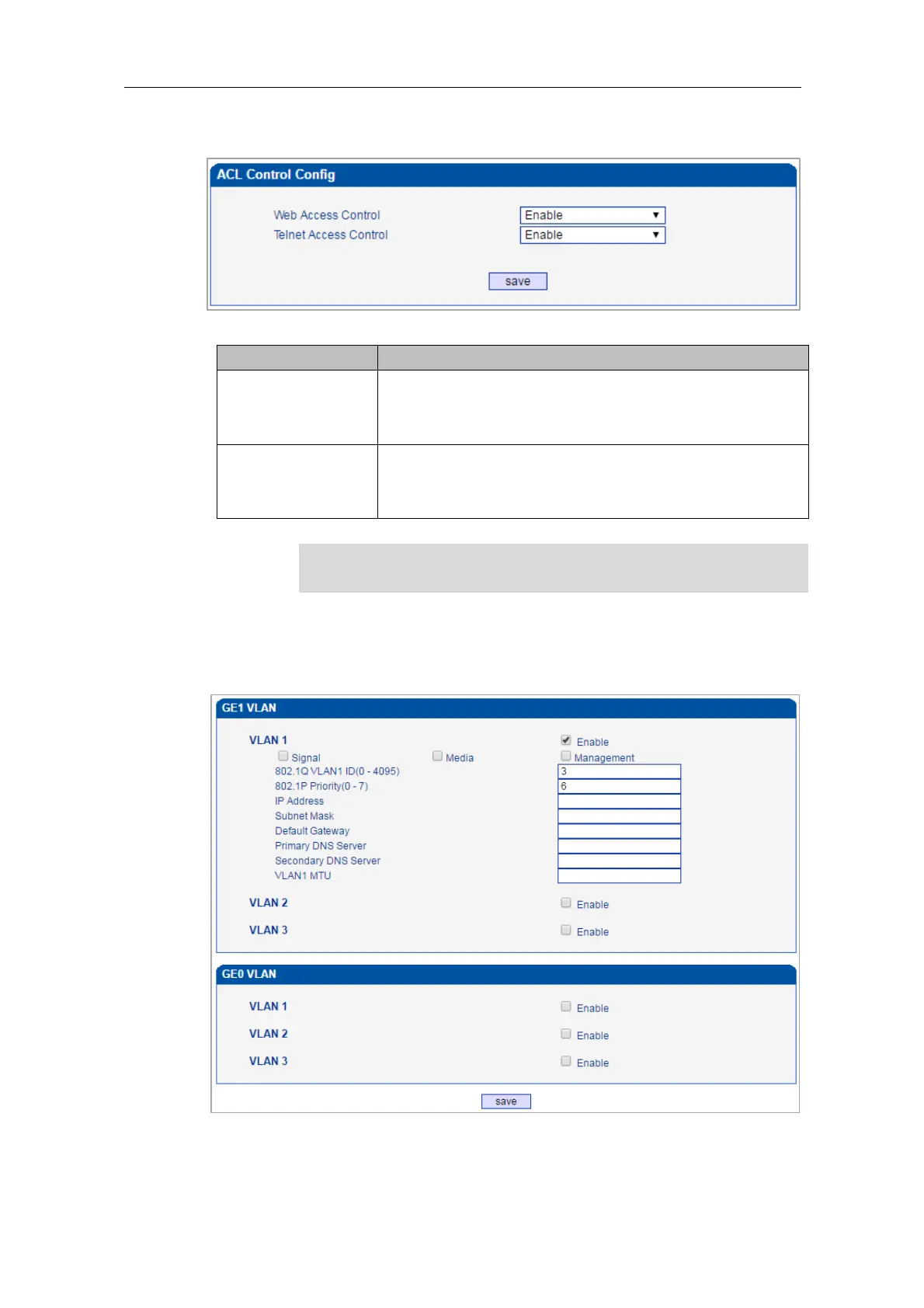 Dinstar MTG200 - ACL Control Config; VLAN Config