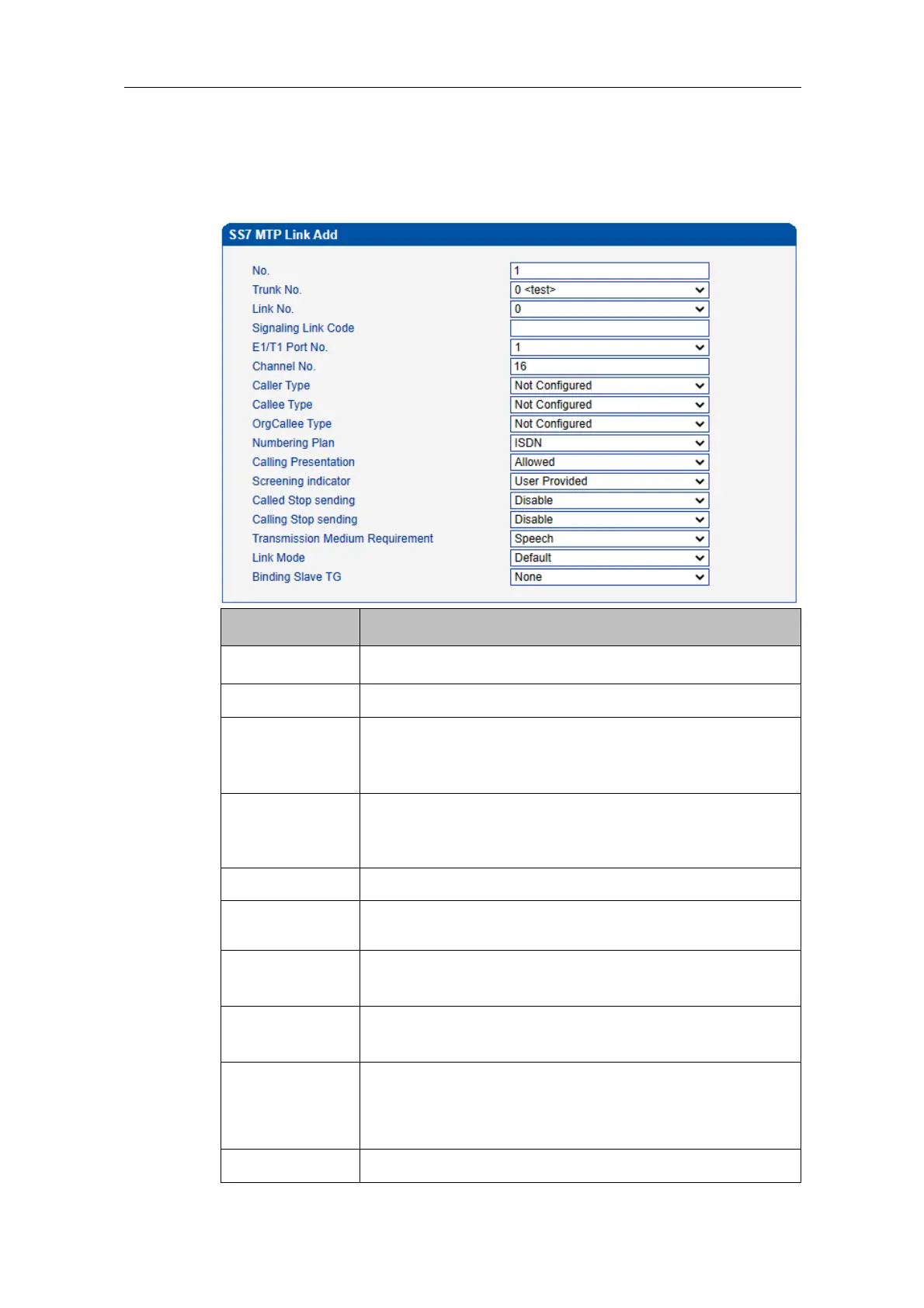 On the SS7 Config -> SS7 MTP Link interface, click the Add button, and you will see the