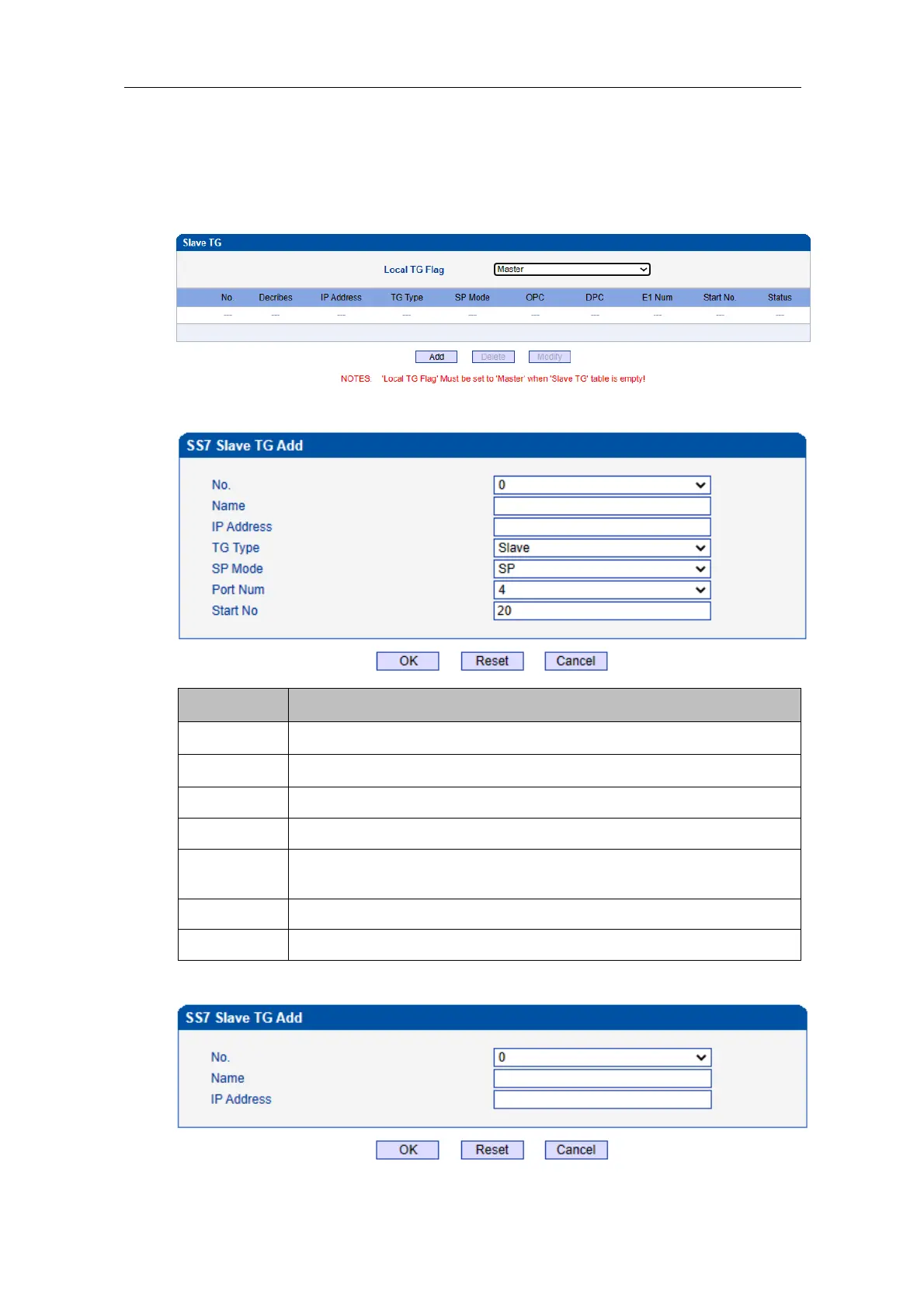 If this TG is the slave TG, and the added page is shown as follows.
