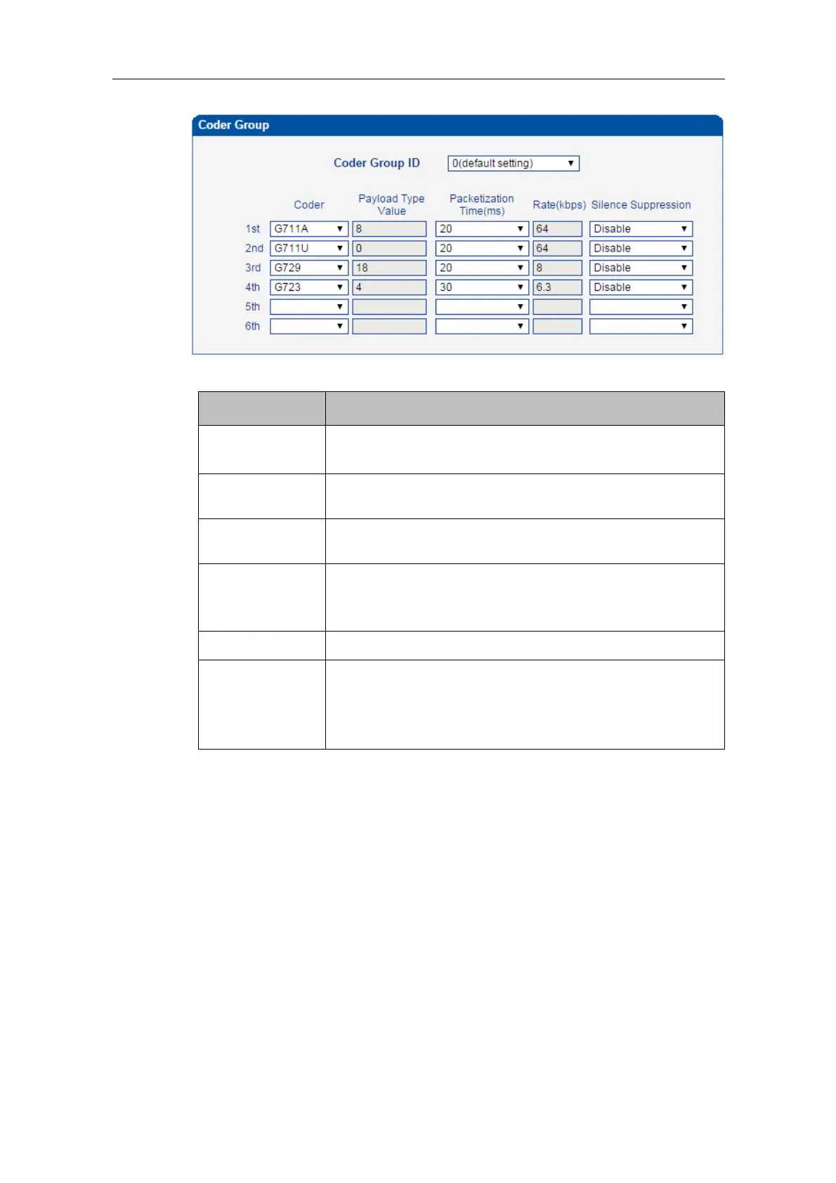 Step1:Enter the Codec Group interface and select Codec group ID 1 to create new Codec