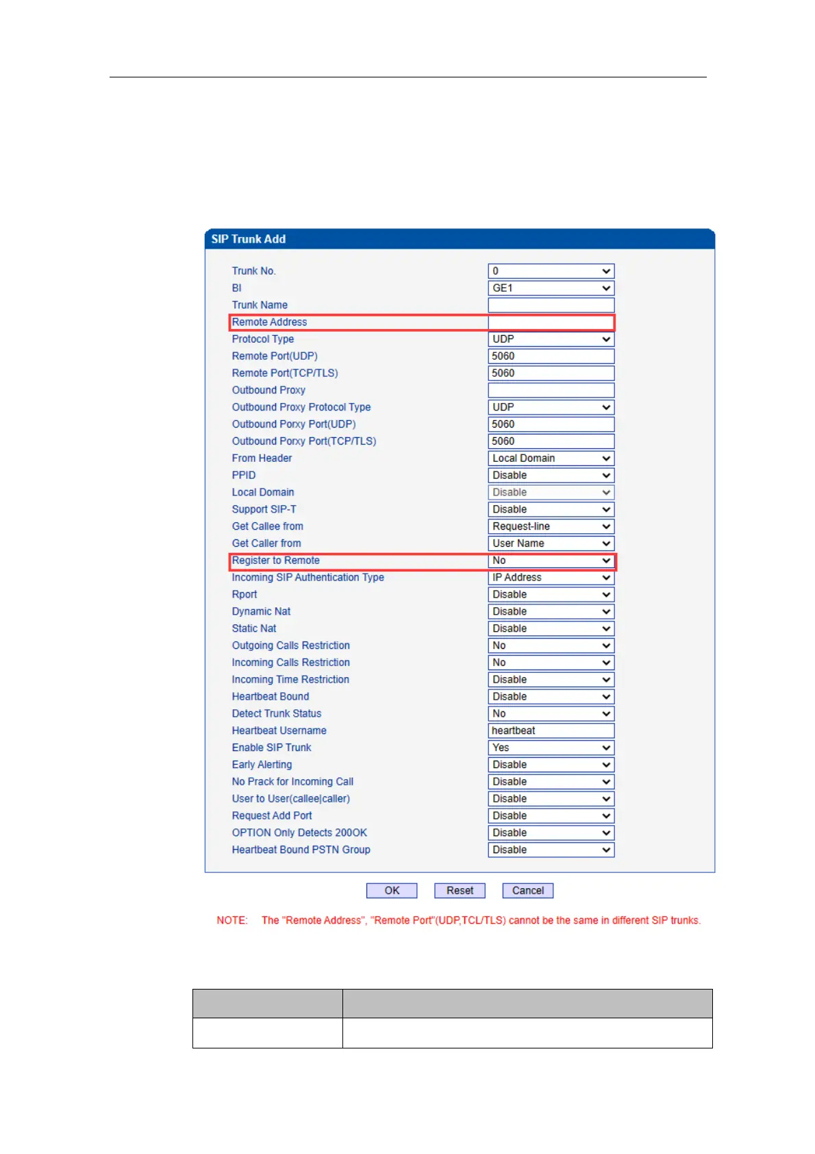 2) Configure parameters on the SIP Trunk Add interface according to related