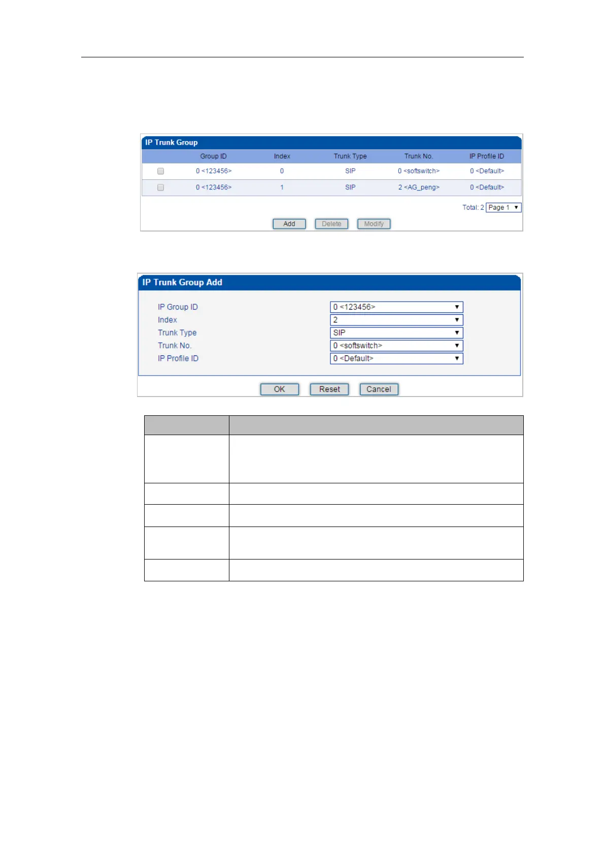 On the IP Group Management interface, you can add IP trunks to the IP group which have