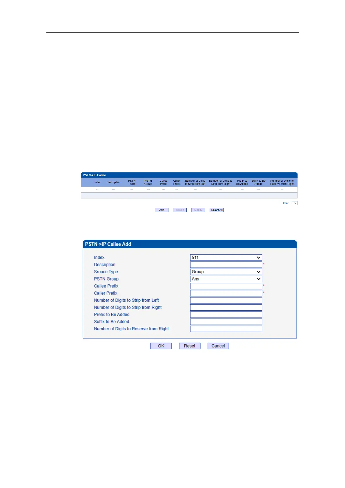 device can support manipulation in six directions, including PSTN->IP Callee/Caller,