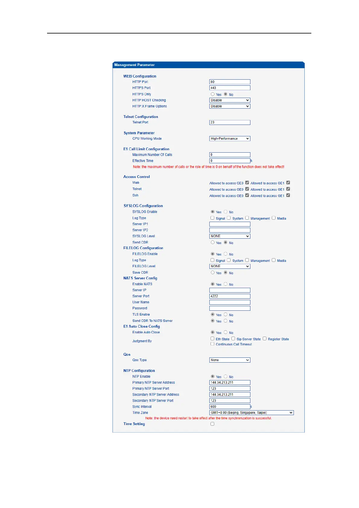 Dinstar MTG2000 - Management Parameter