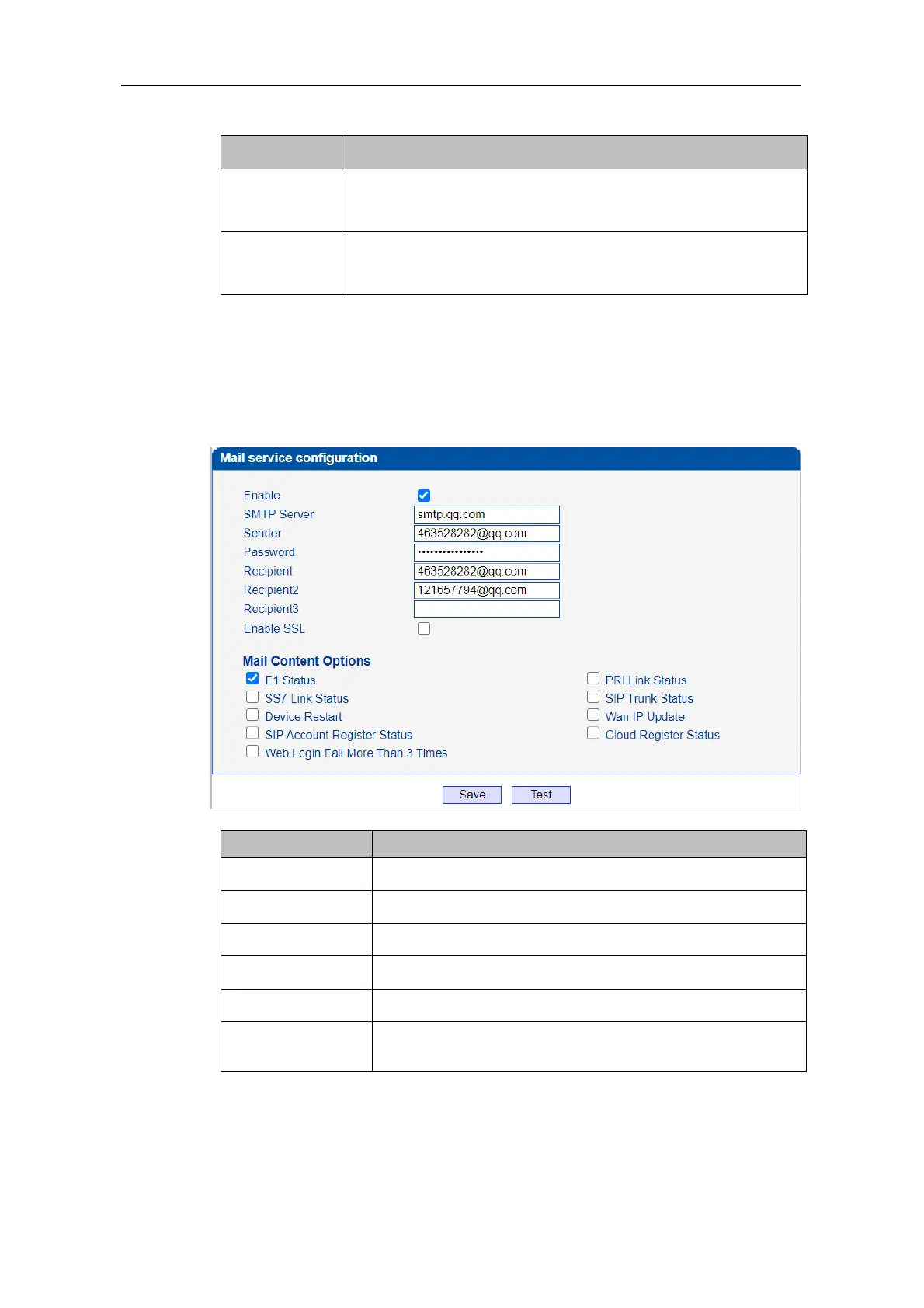 After enabling the mail service, it can send device alarm emails to specific recipients
