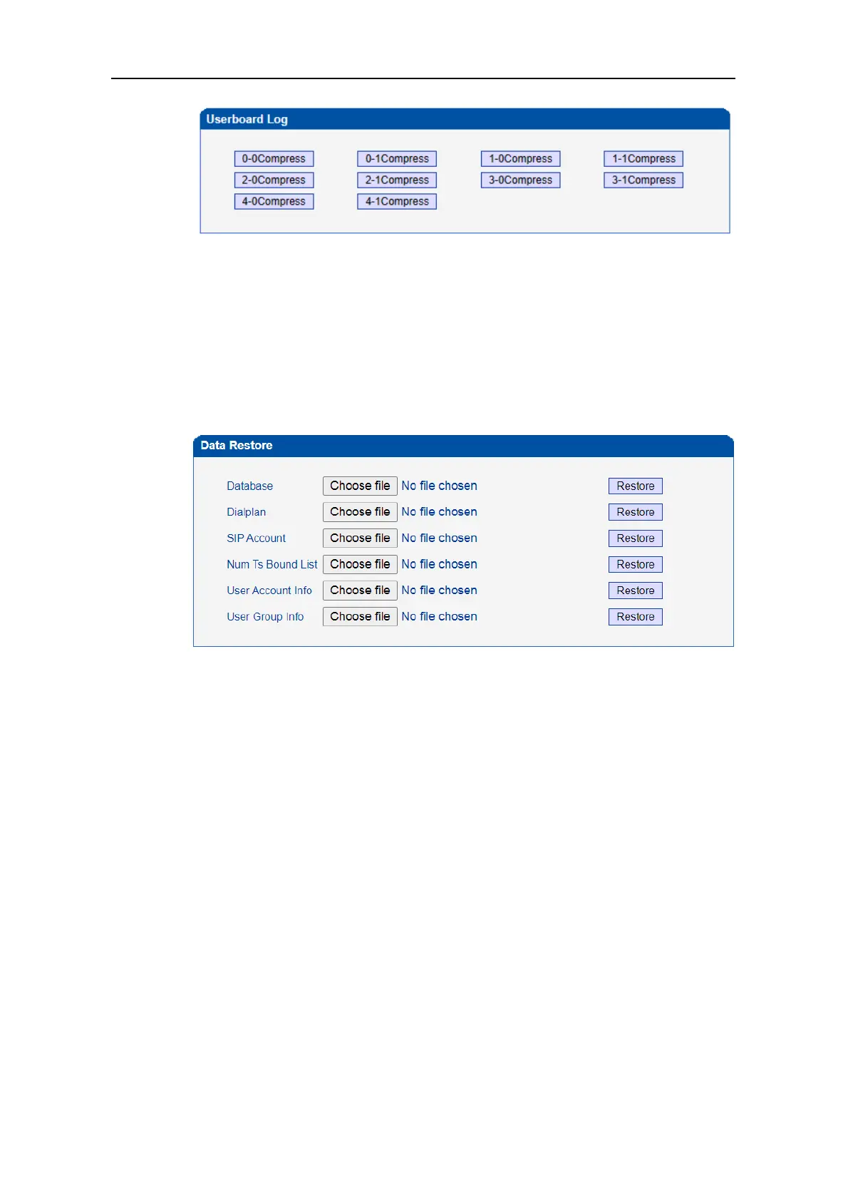 On the Data Restore interface, you can restore database, dialplan, SIP account and so on.